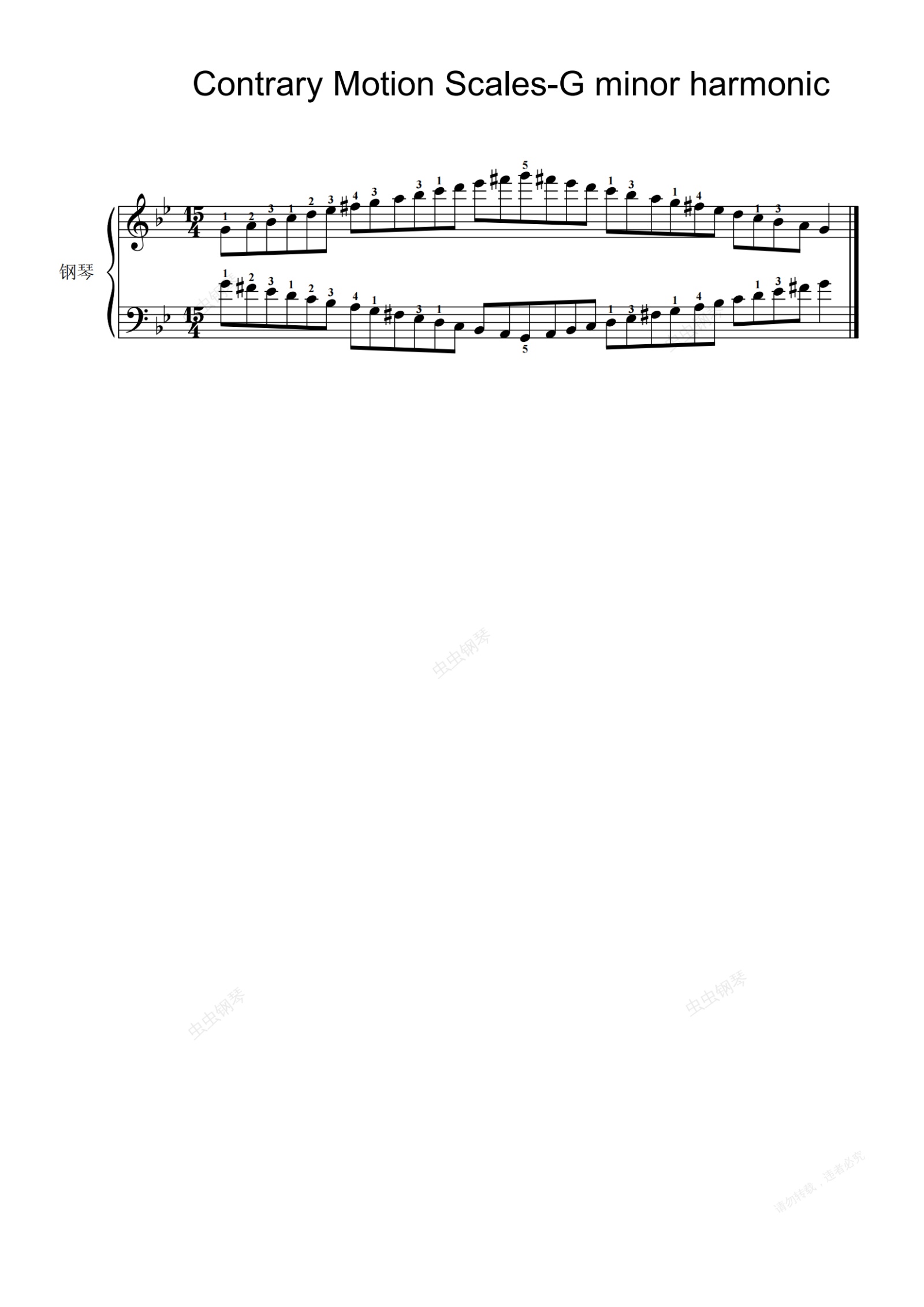 钢琴谱:Contrary Motion Scales-G minor harmonic