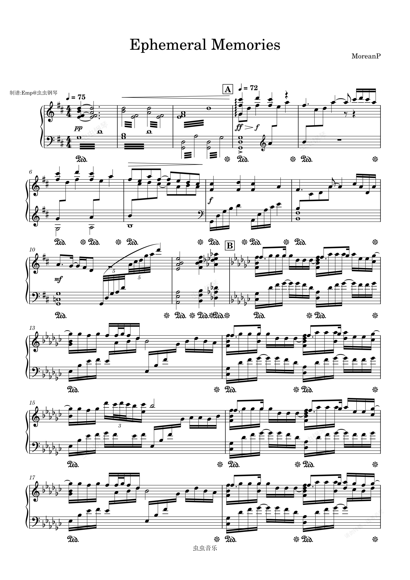 钢琴谱:Ephemeral Memories【纯音乐】钢琴改编
