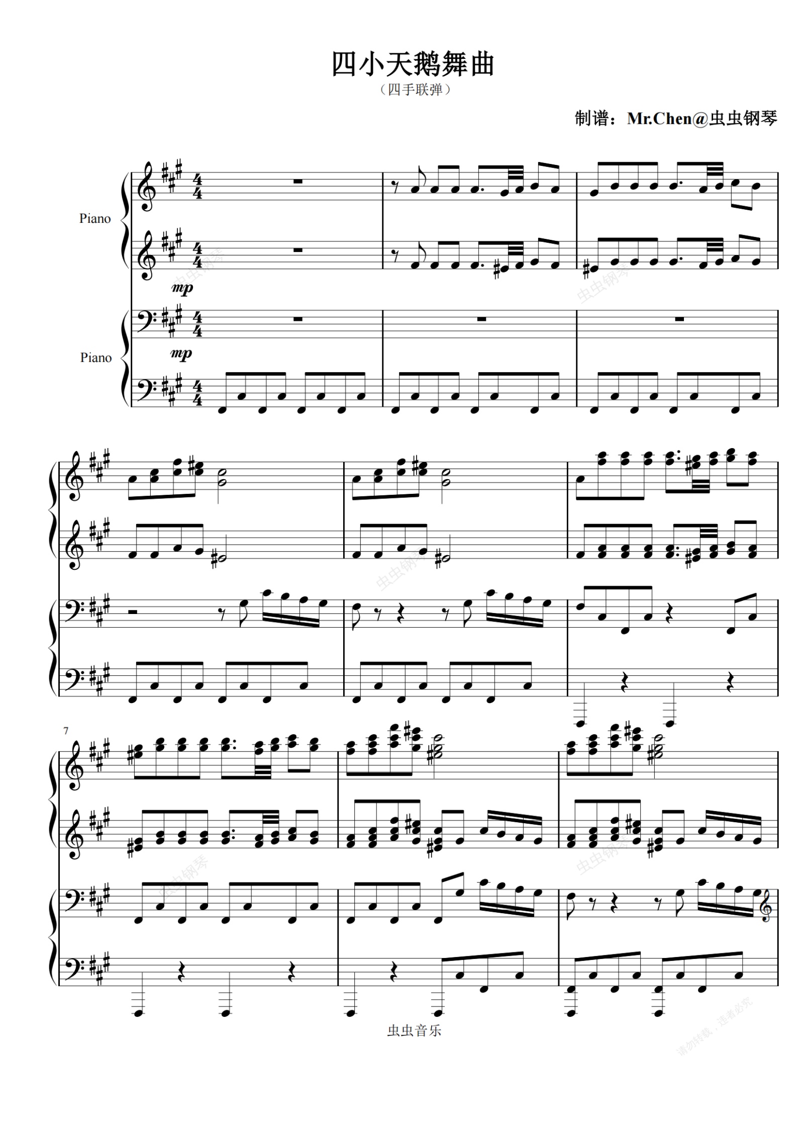 钢琴谱:四小天鹅舞曲 (四手联弹)-柴可夫斯基