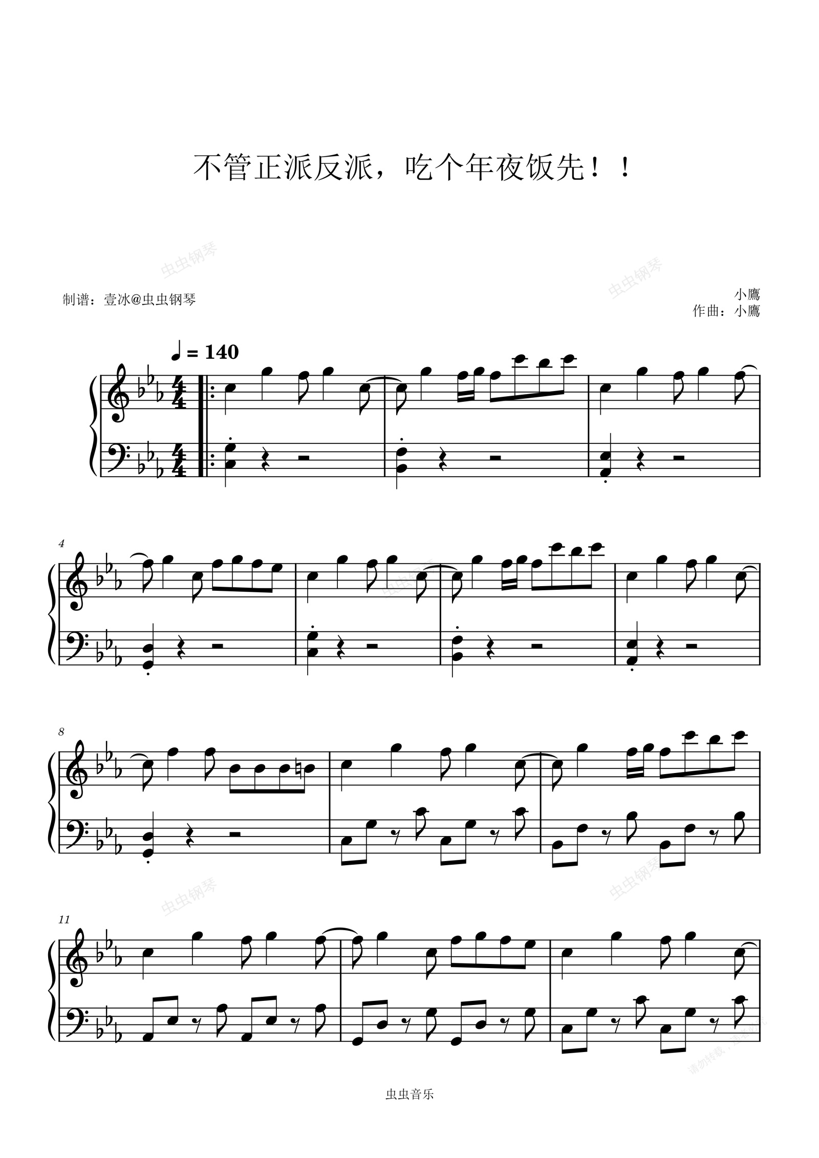 钢琴谱:不管正派反派,吃个年夜饭先!!(杀青梗BGM)