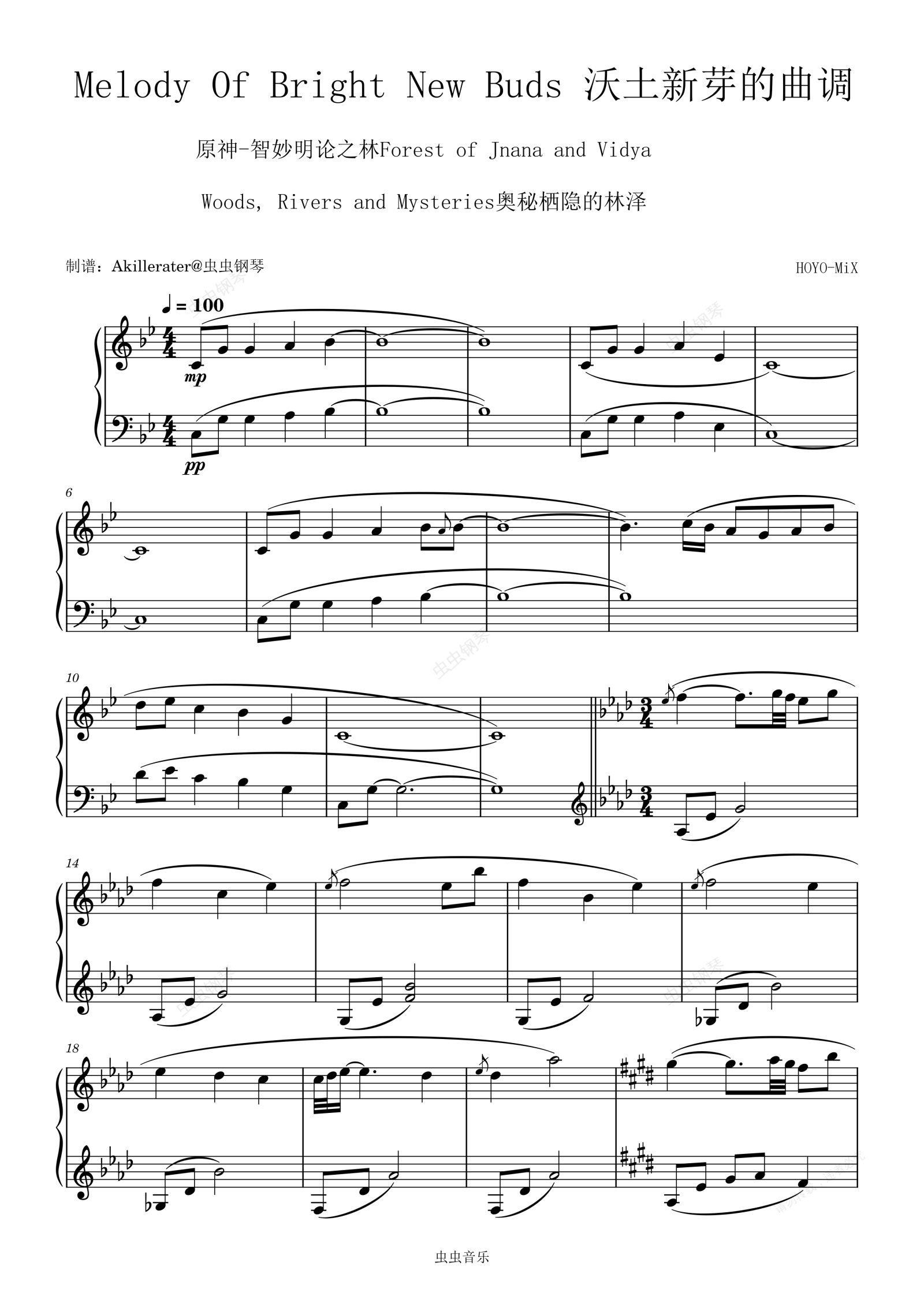 钢琴谱:Melody Of Bright New Buds 沃土新芽的曲调《原神-智妙明论之林Forest of Jnana and Vidya》