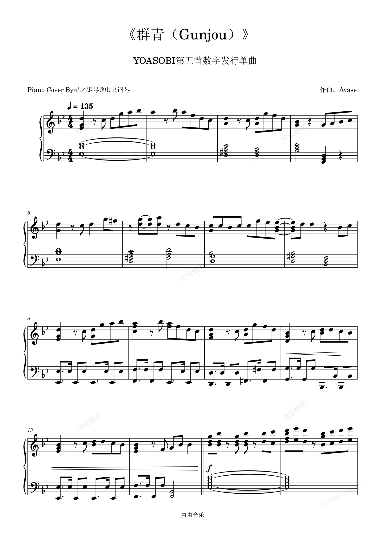 钢琴谱:钢琴完美演奏版《群青(Gunjou)》YOASOBI~星之钢琴~