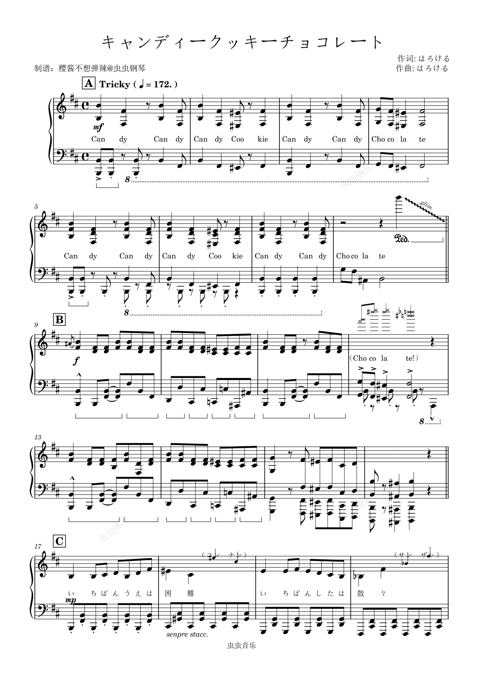 钢琴谱:キャンディークッキーチョコレート はろける/初音ミク/重音テト