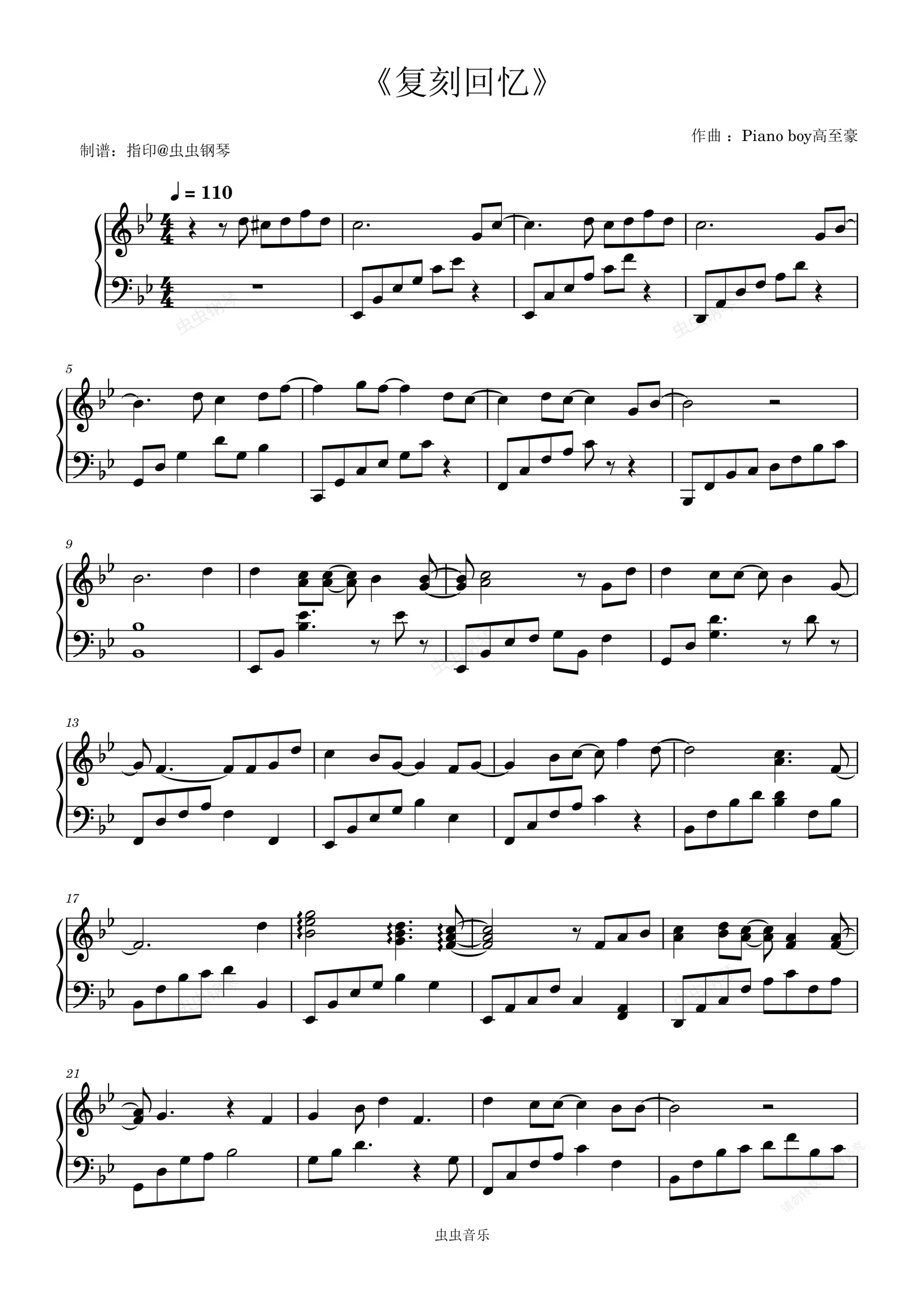钢琴谱:《复刻回忆》Piano boy高至豪