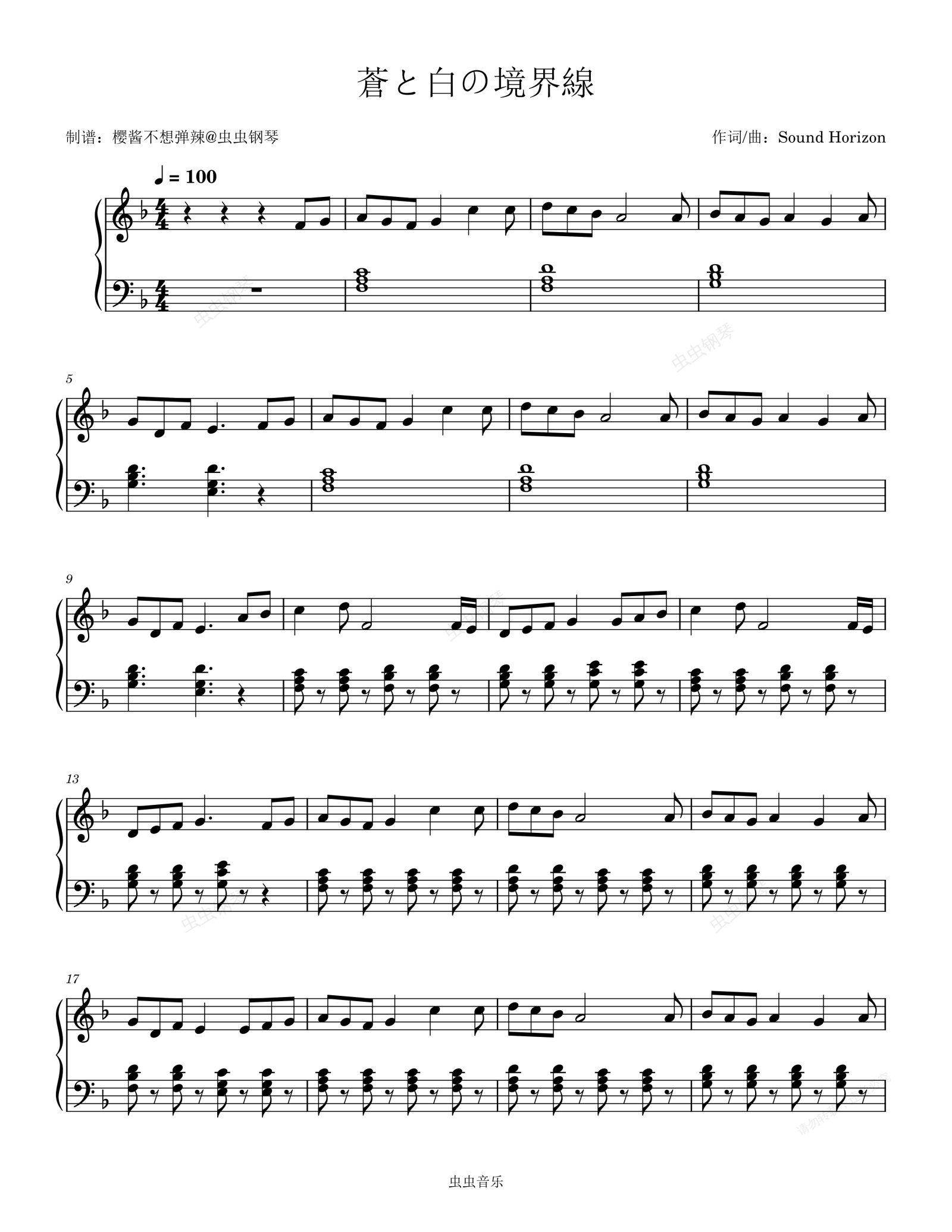 钢琴谱:蒼と白の境界線 Sound Horizon