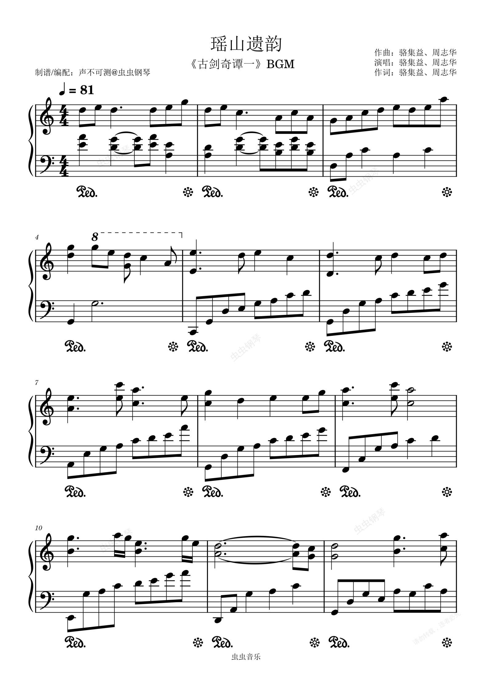 钢琴谱:瑶山遗韵《古剑奇谭一》BGM - 声不可测