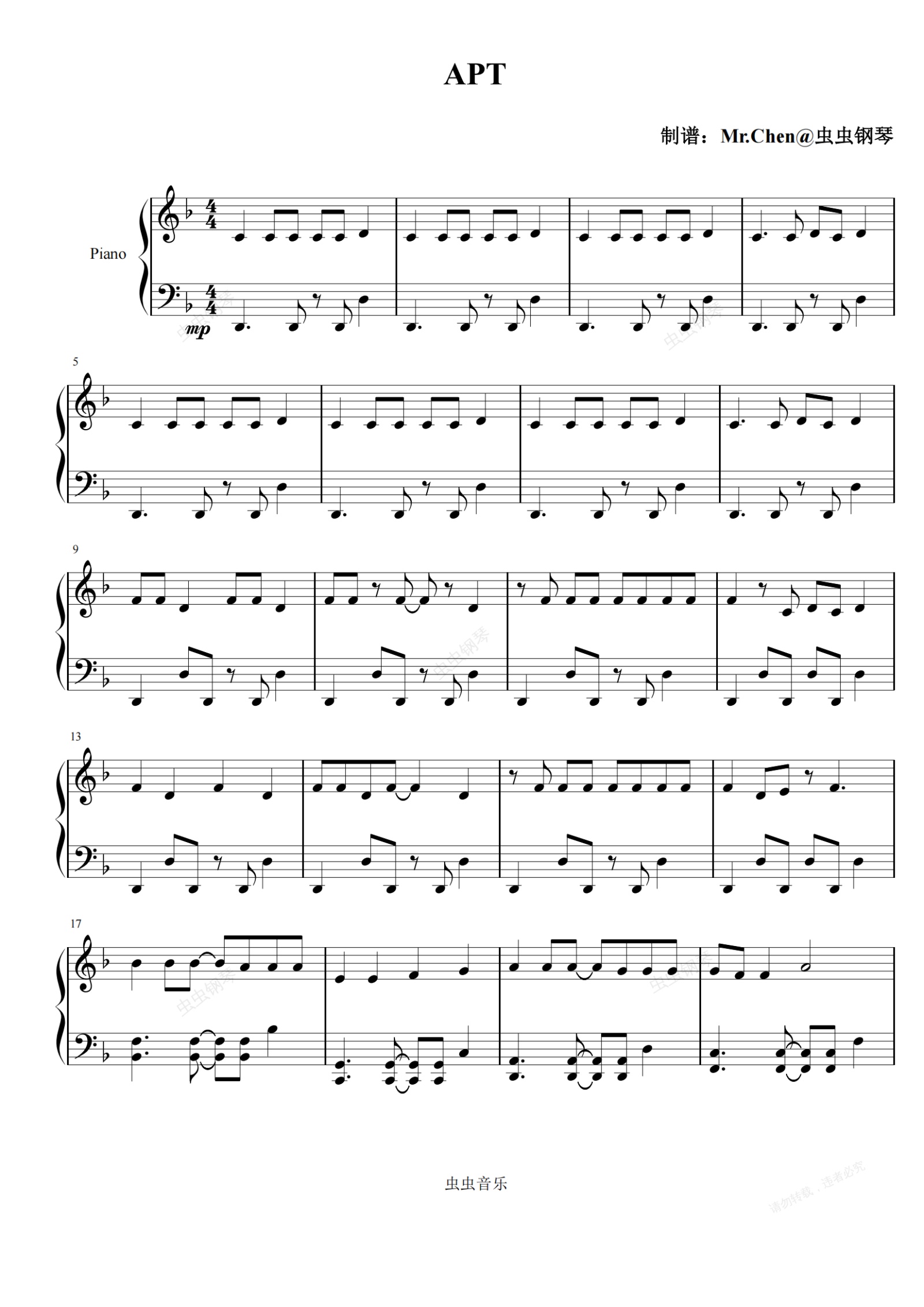 钢琴谱:APT - F调 ROSÉ/Bruno Mars 极度还原