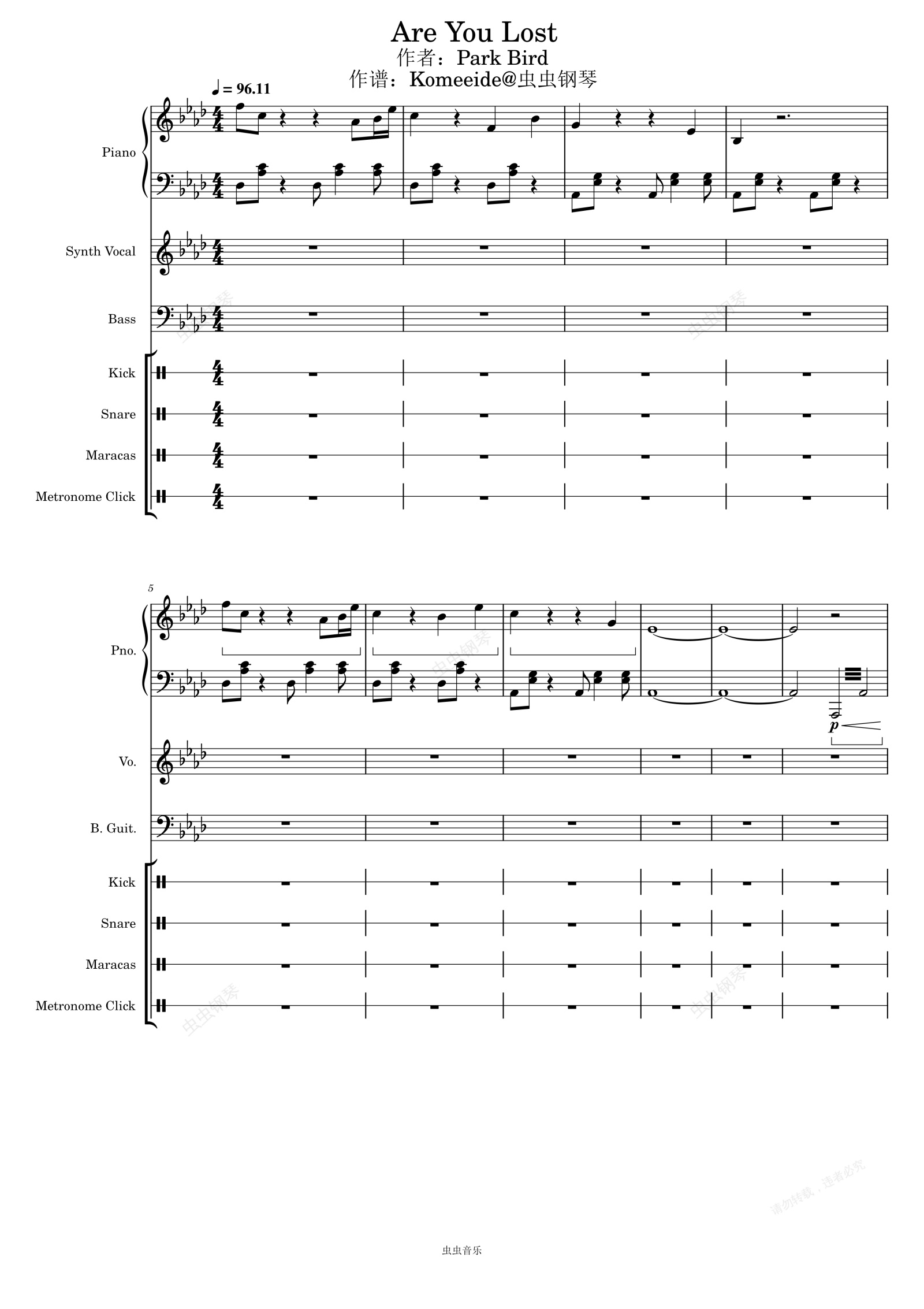 钢琴谱:Are you Lost - Park Bird 总谱 高难 作谱:Komeeide