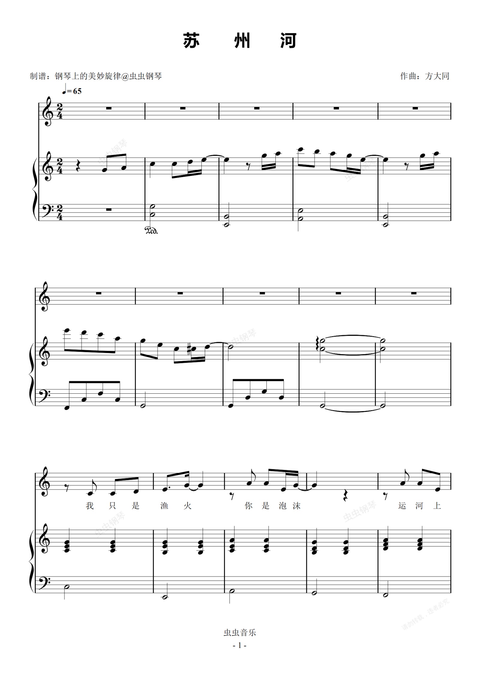 钢琴谱:苏州河 C调简易钢琴弹唱 带歌词 薛凯琪/方大同