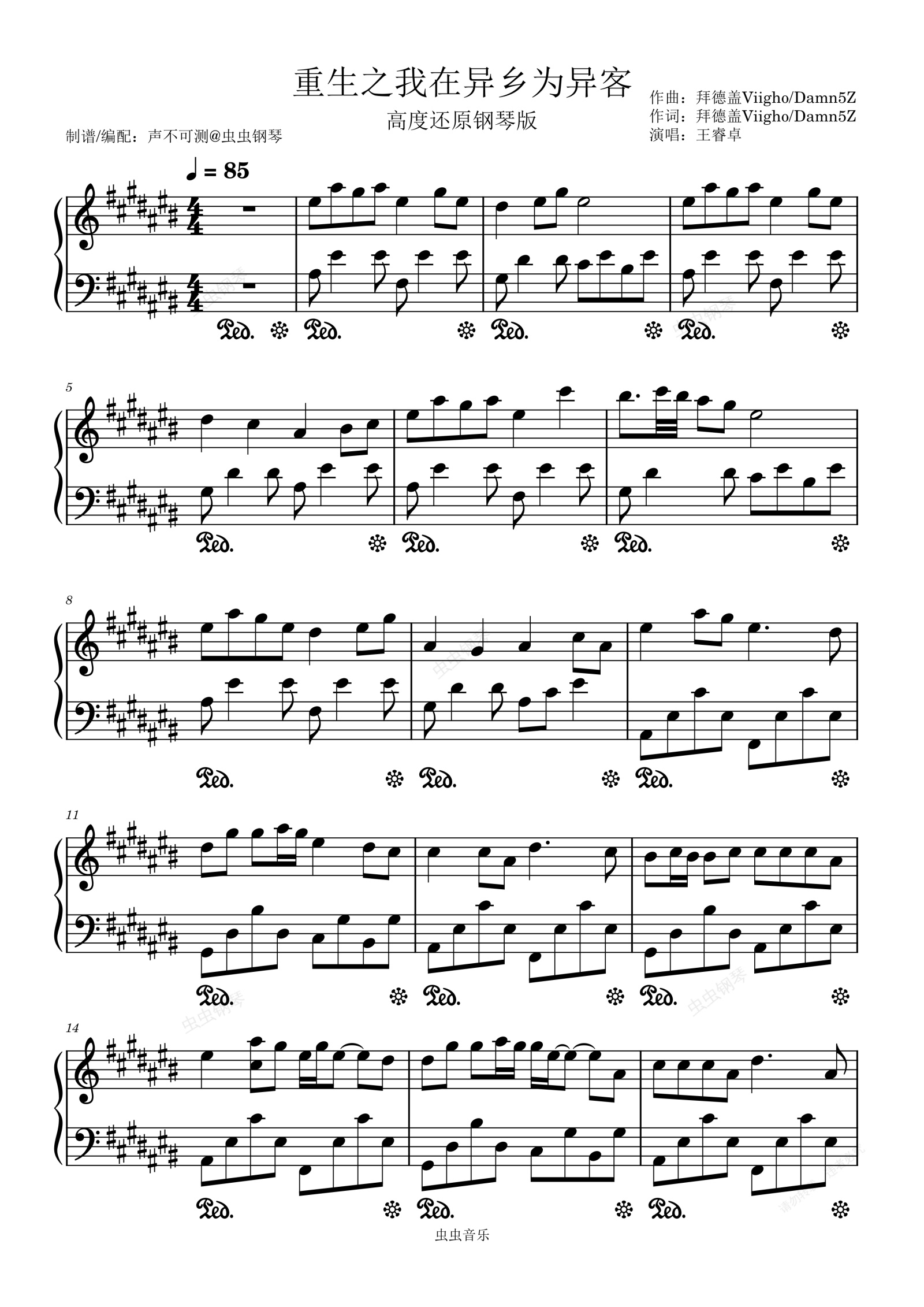 钢琴谱:《重生之我在异乡为异客》高度还原钢琴版 - 声不可测