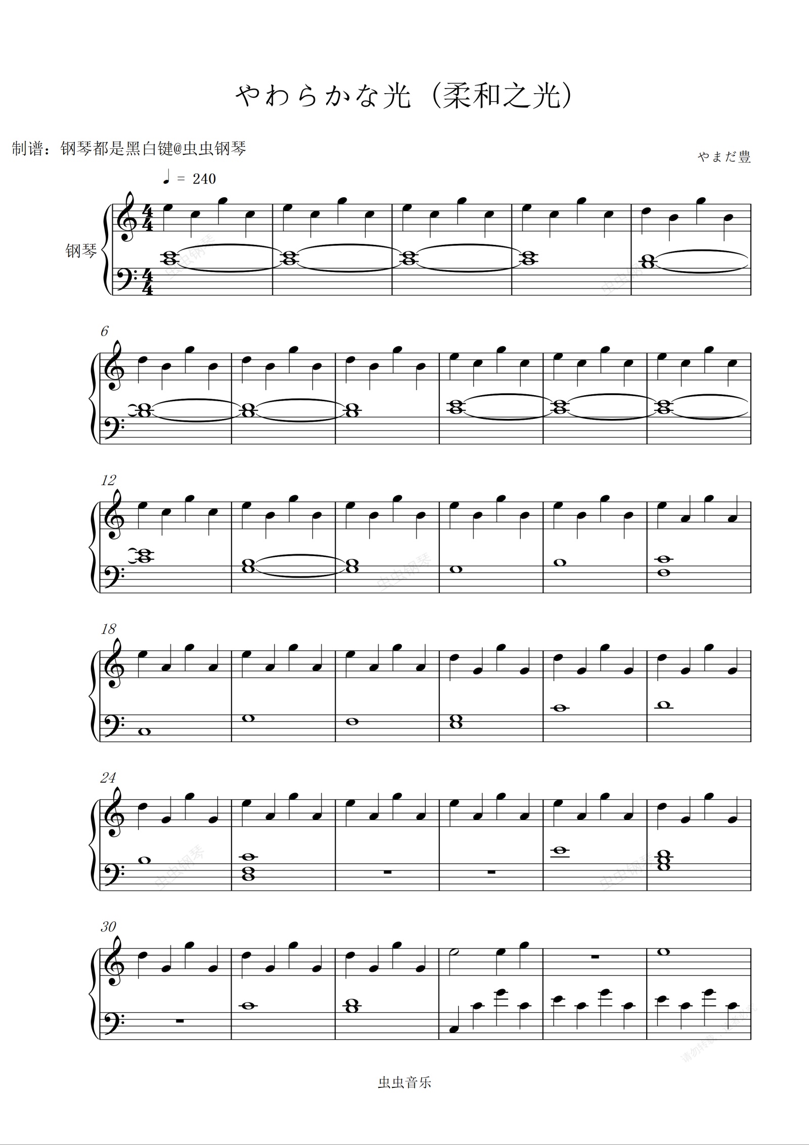 钢琴谱:やわらかな光 (柔和之光) - “抬头看,天上就是光!