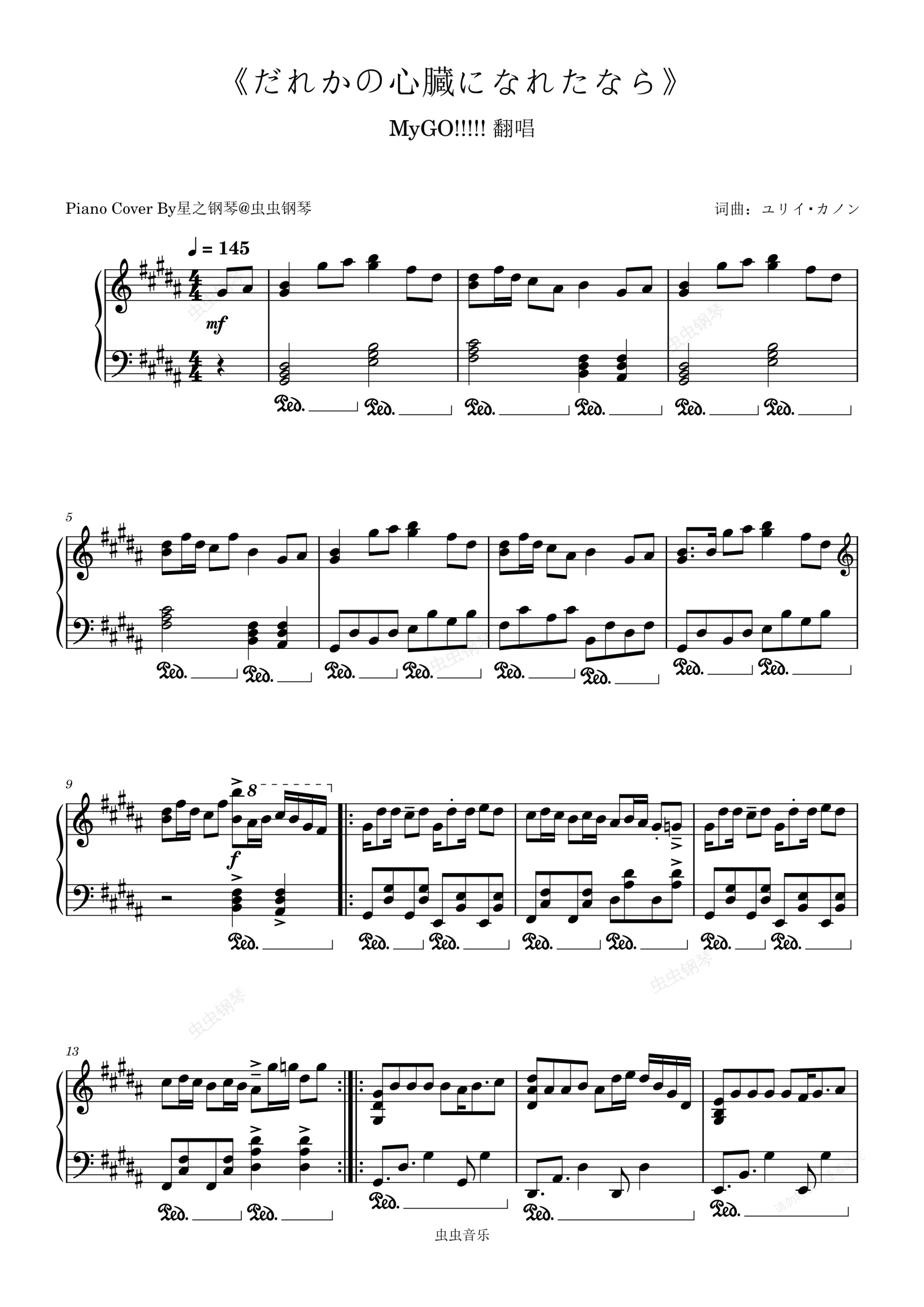 钢琴谱:MyGO!!!!!翻唱-尤里·卡农词曲《だれかの心臓になれたなら》极限华丽还原版~星之钢琴~