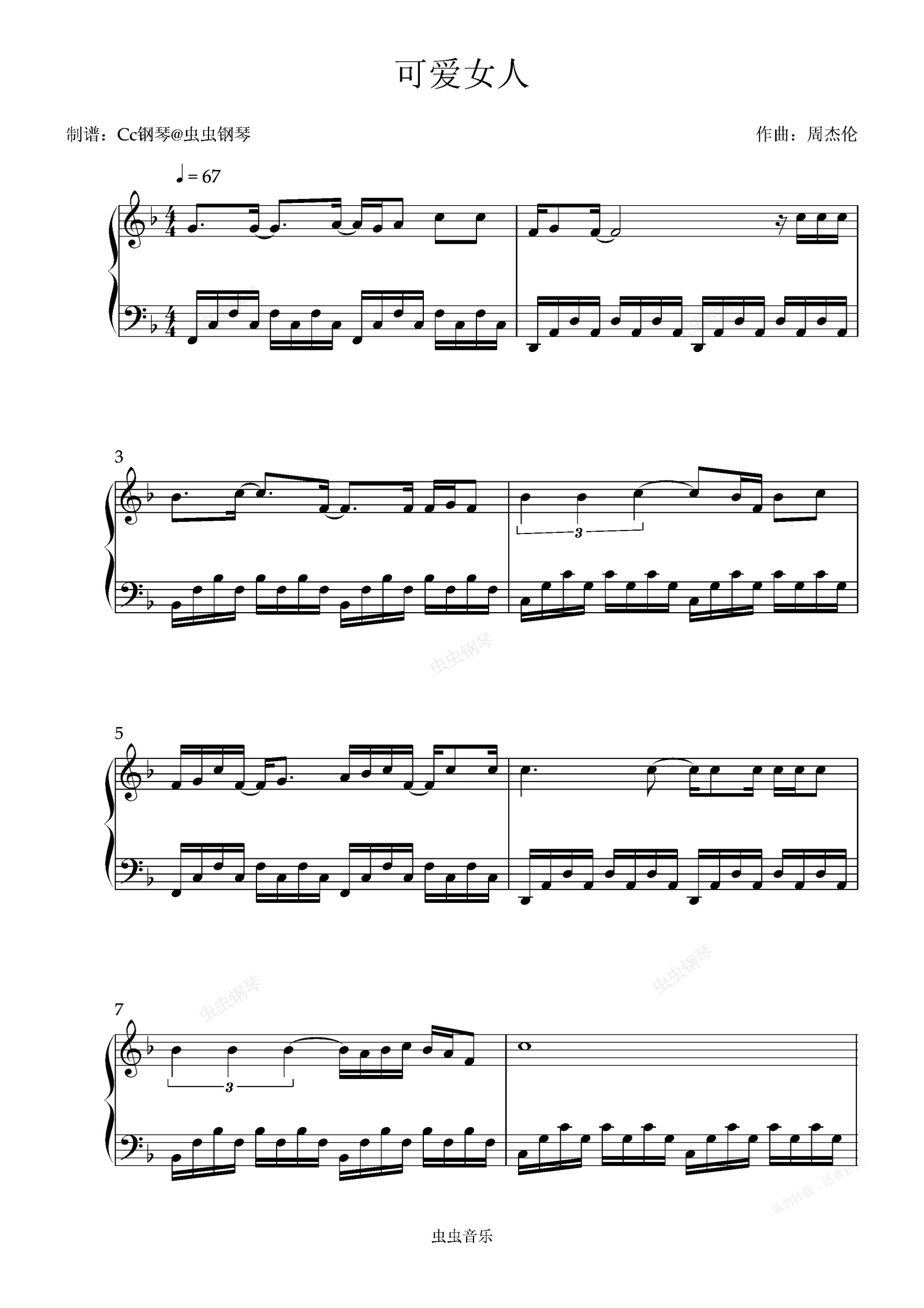 钢琴谱:可爱女人 原调 好听易上手