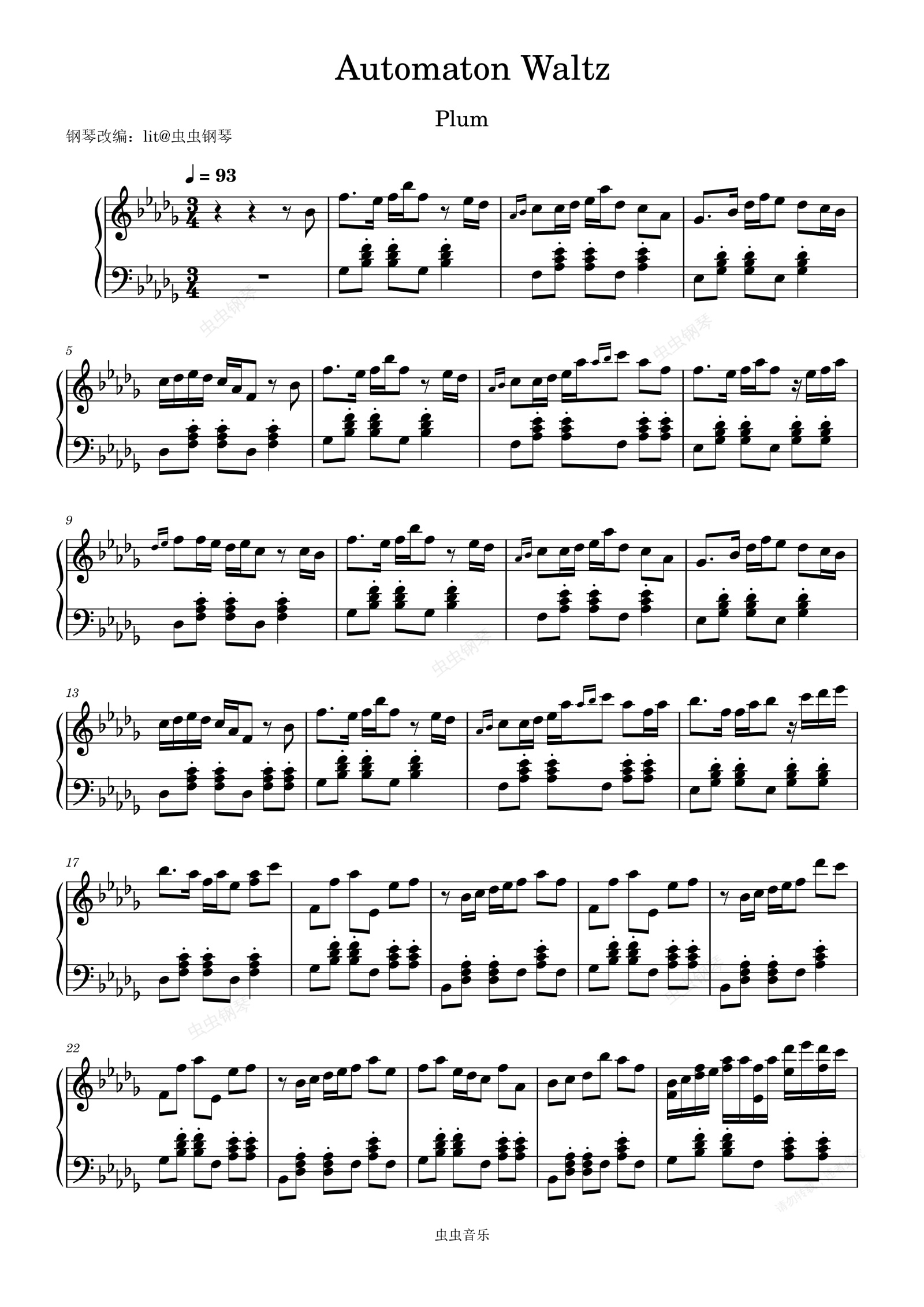 钢琴谱:Automaton Waltz(完美还原版)