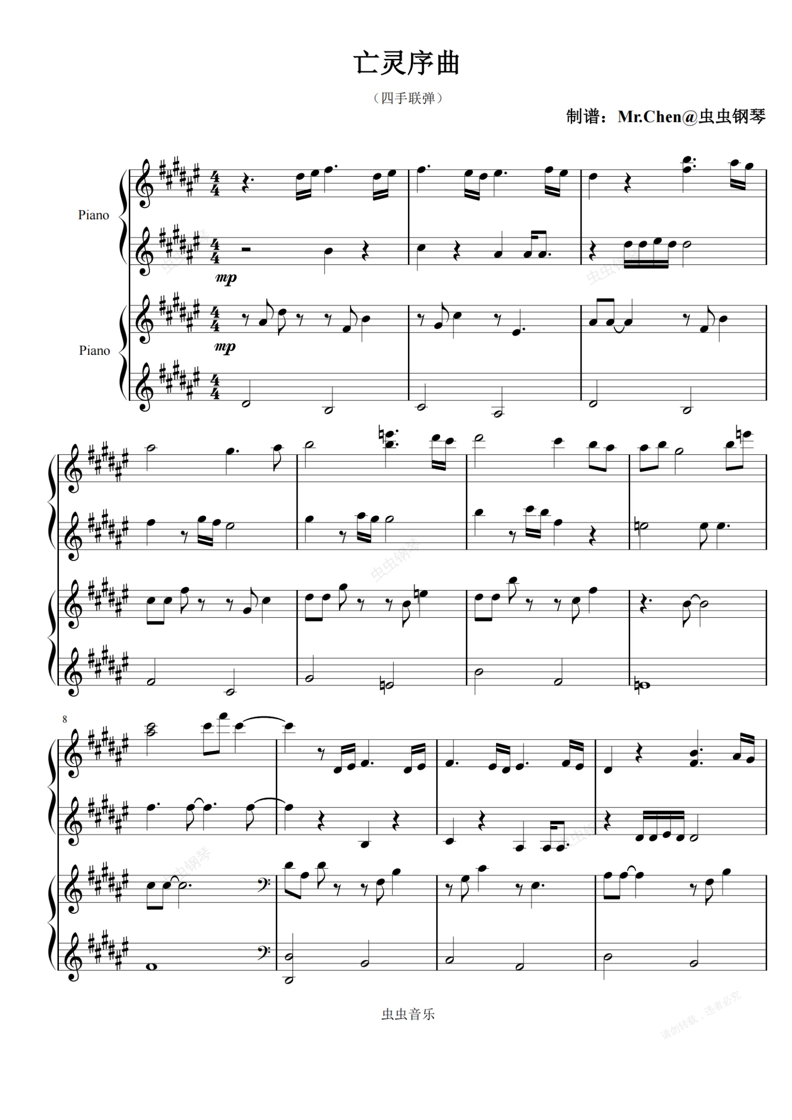 钢琴谱:亡灵序曲 (四手联弹)-《魔兽争霸》BGM The Dawn