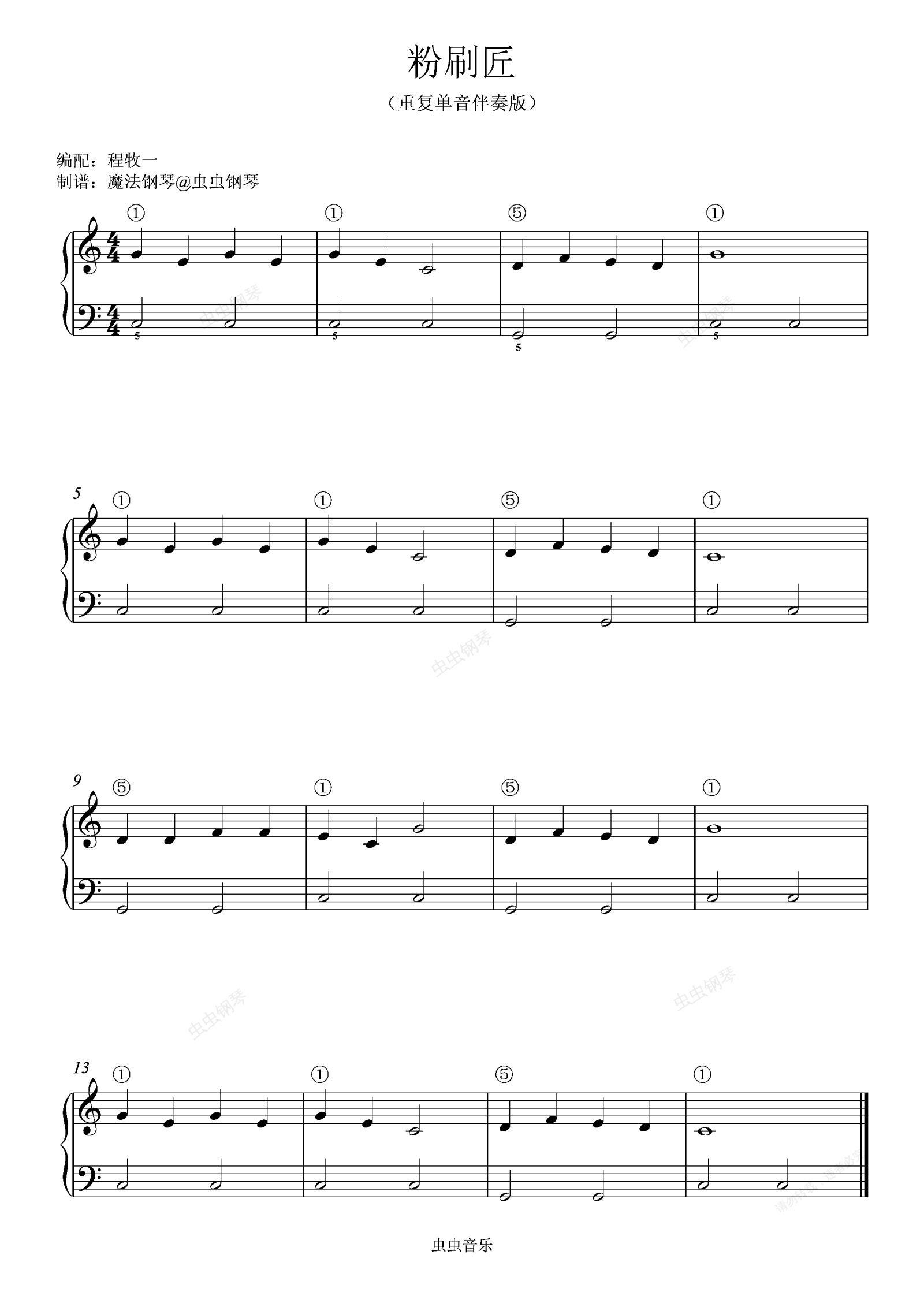 钢琴谱:粉刷匠 - 重复单音伴奏版