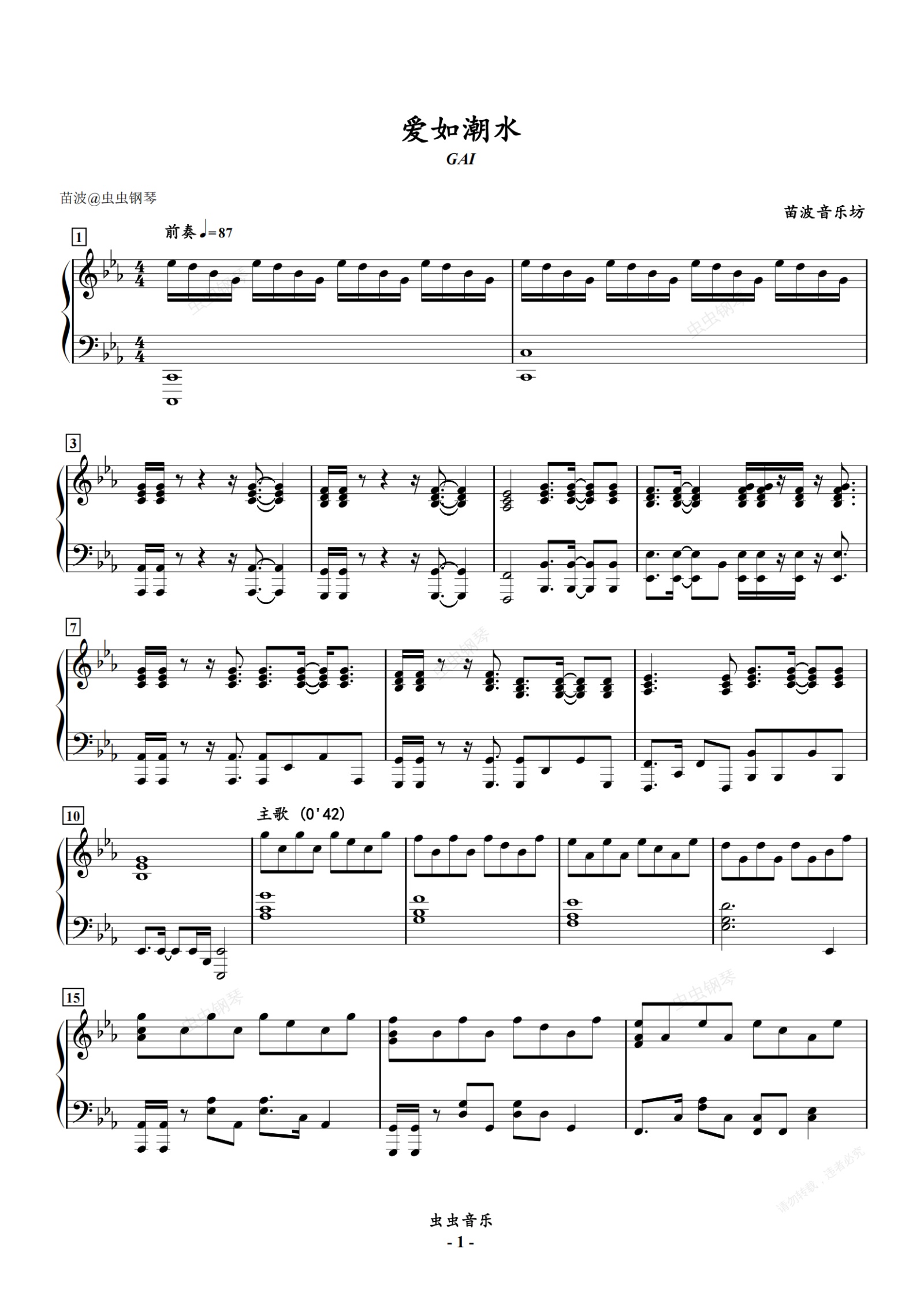 钢琴谱:《爱如潮水》钢琴伴奏谱