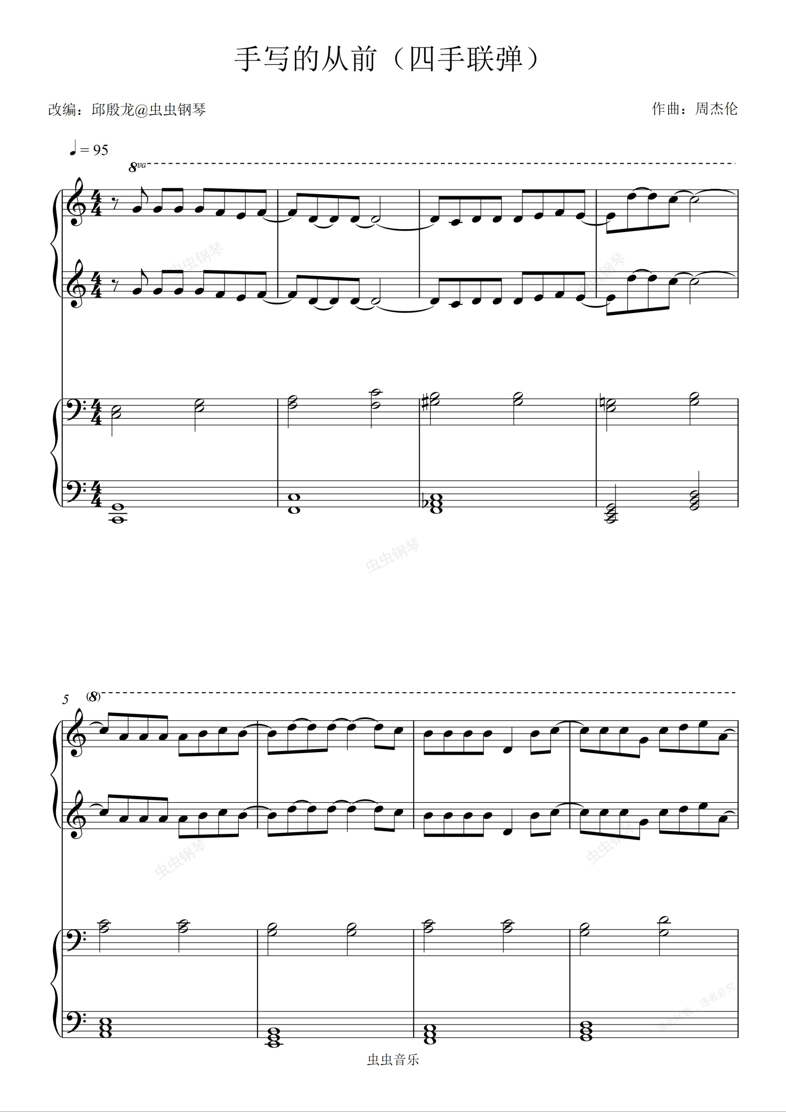 钢琴谱:周杰伦-手写的从前(四手联弹)