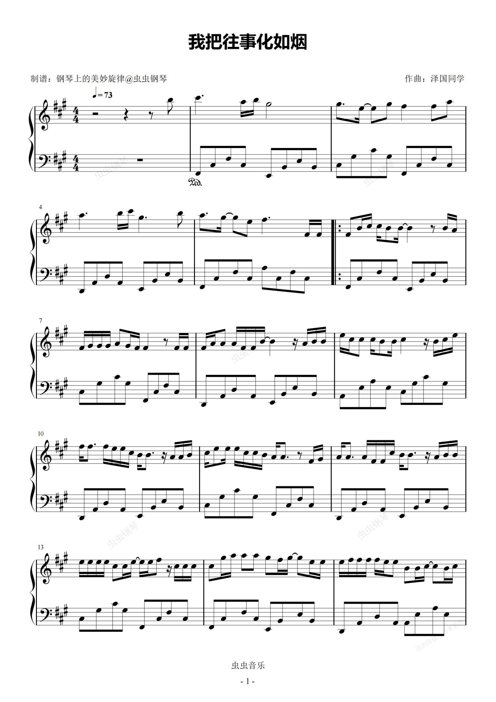 钢琴谱:我把往事化如烟 原调简易版 侯泽润