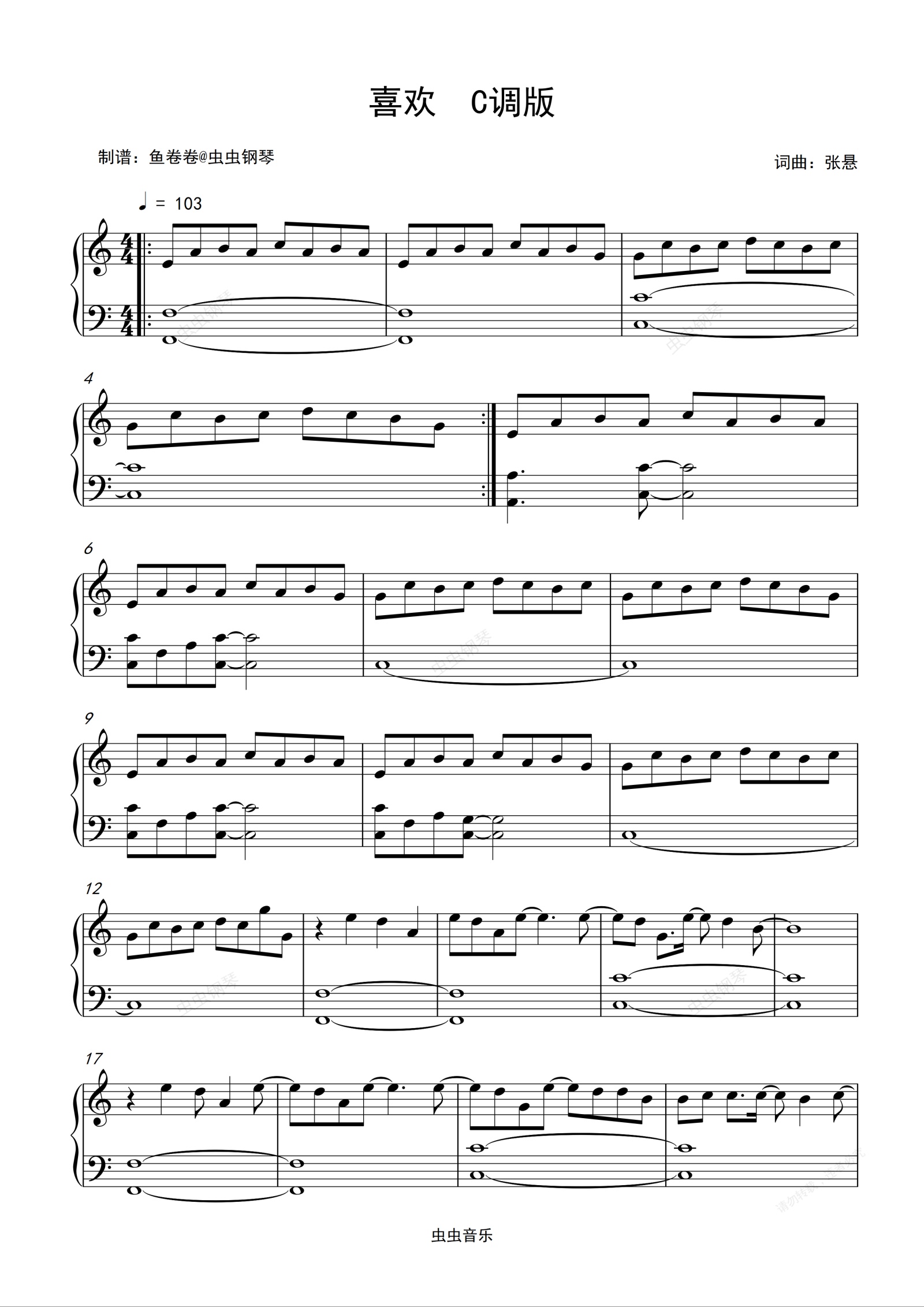 张悬经典专辑《亲爱的…我还不知道》中的歌曲,本谱根据原版歌曲改编,右手是vocal结合部分电吉他旋律和吉他分解和弦,左手结合原版钢琴吉他改编。原歌曲为bD调,本谱是C调版本。