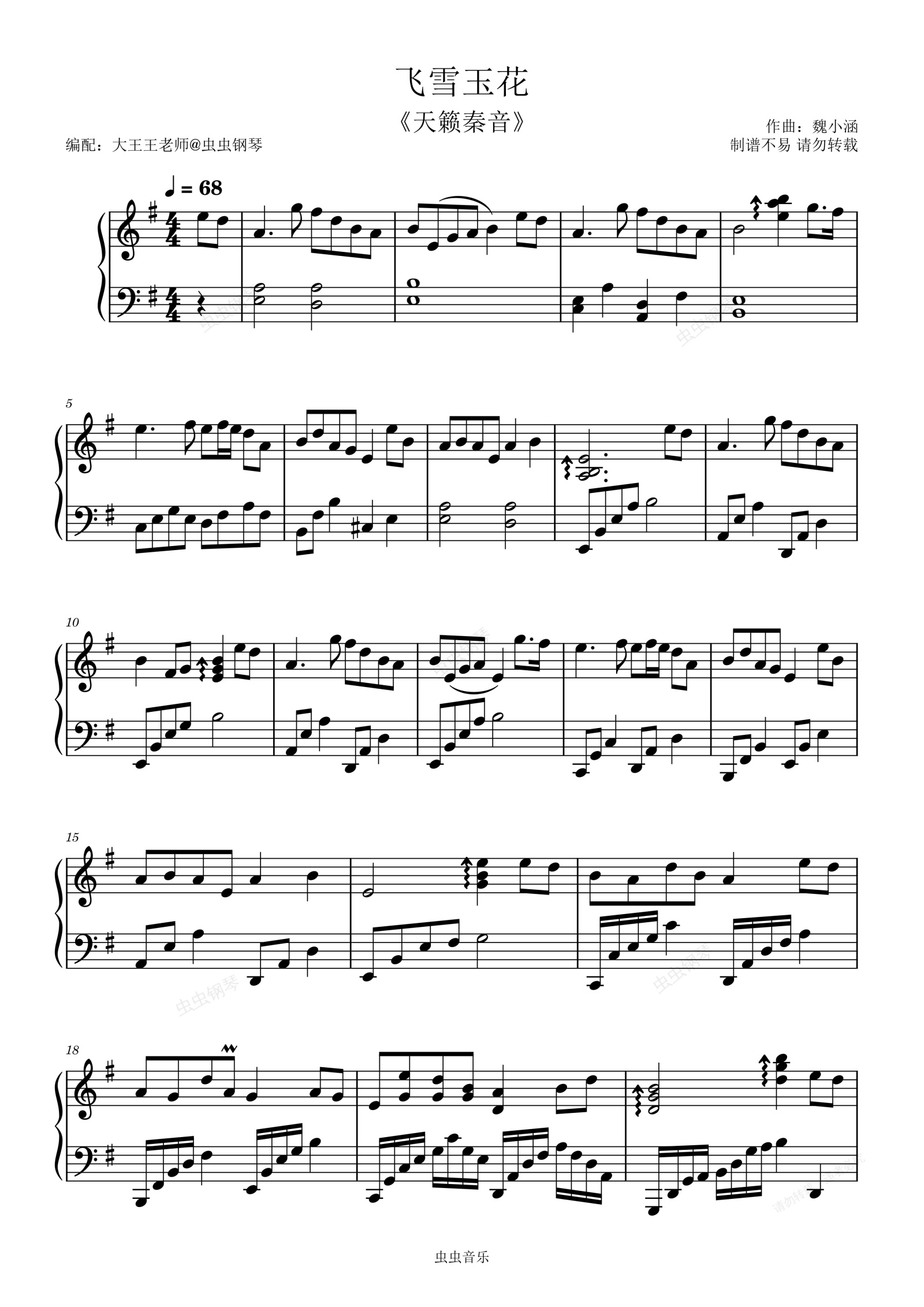 钢琴谱:飞雪玉花(纯音乐古风伤感背景音乐)