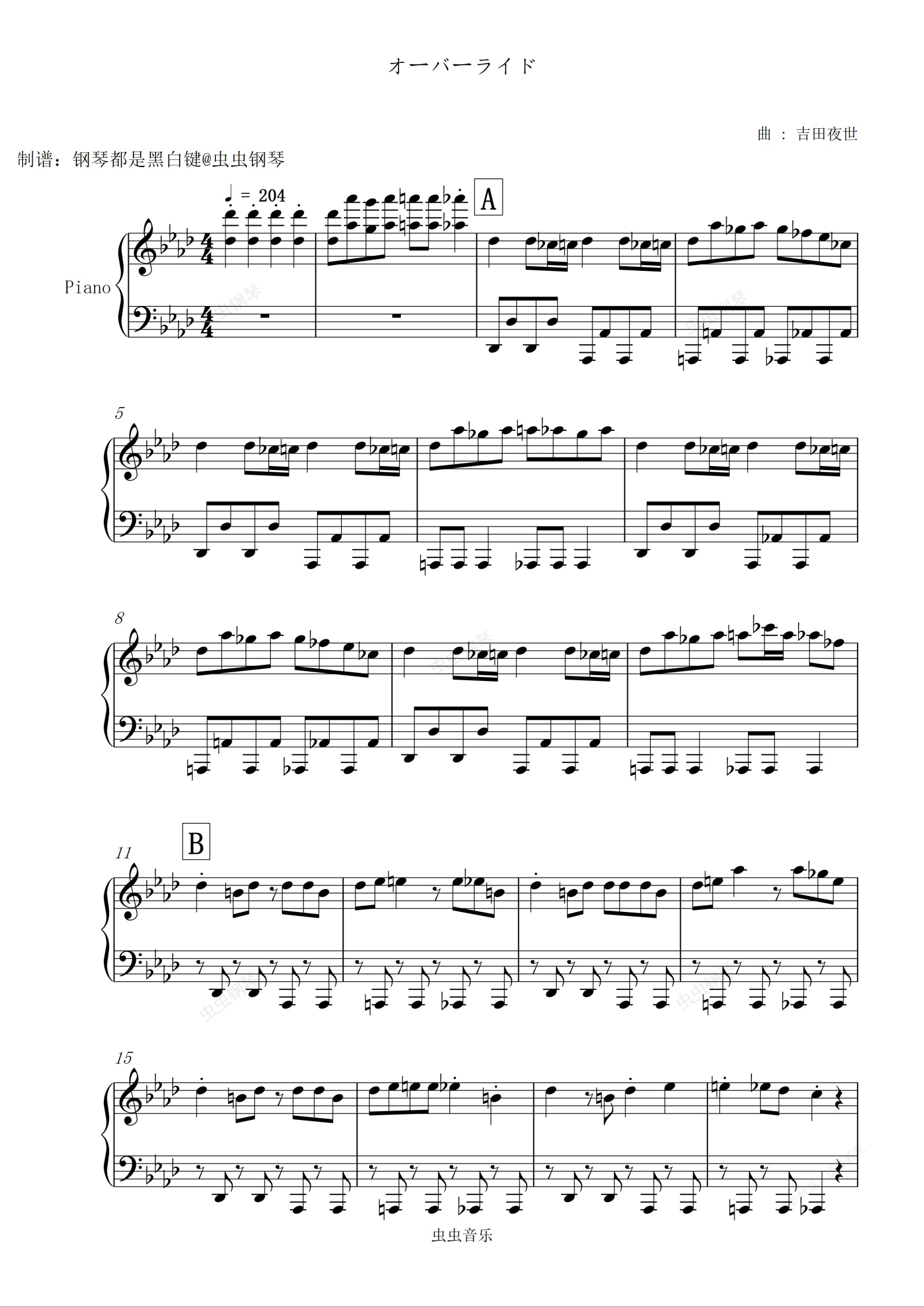 钢琴谱:オーバーライド - 重音テトSV[吉田夜世]