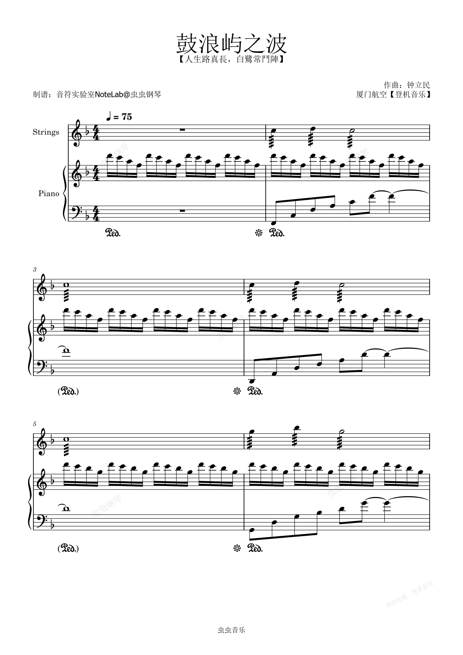 钢琴谱:鼓浪屿之波(厦门航空登机音乐)