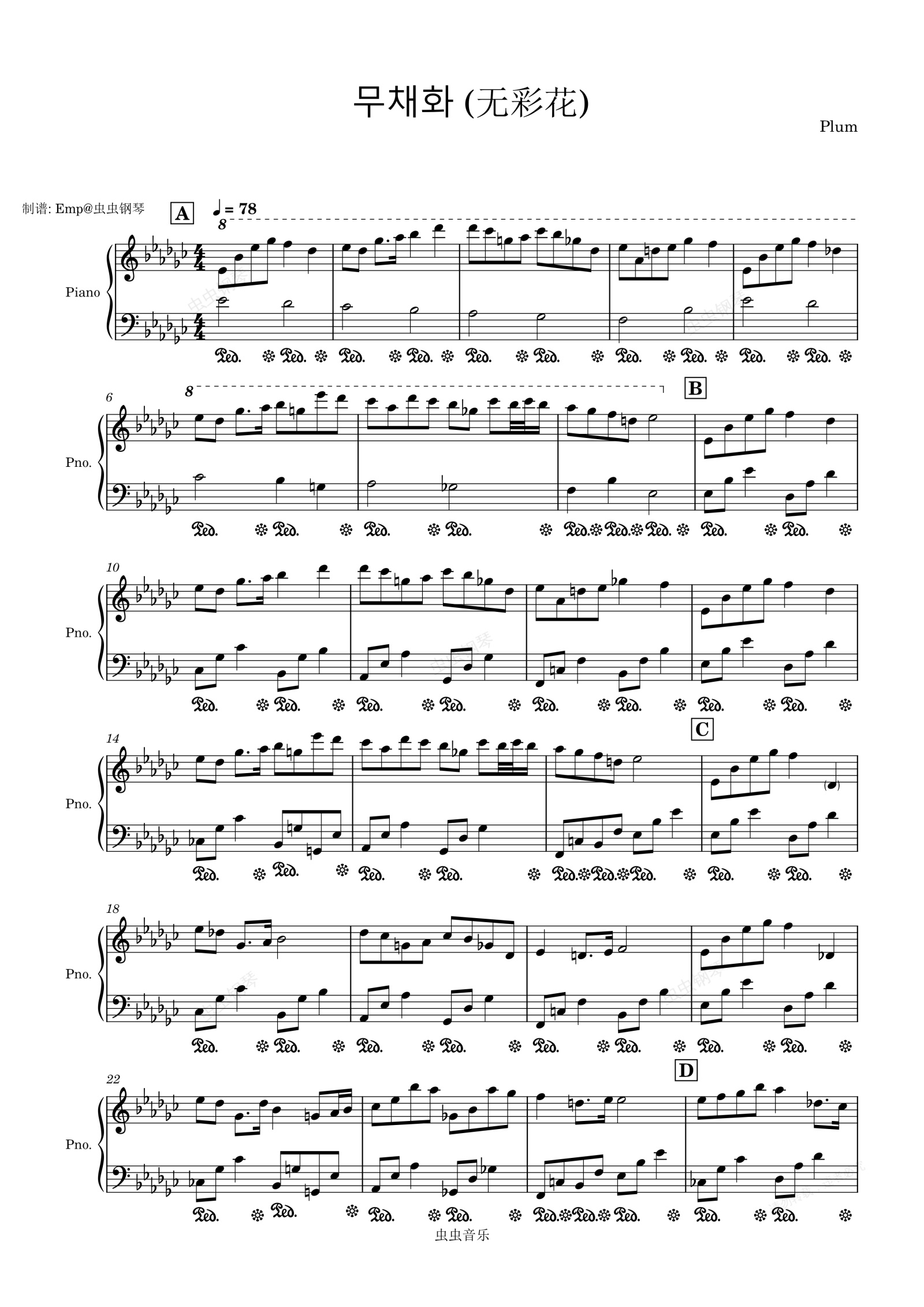 钢琴谱:Plum新曲 무채화 (无彩花) 钢琴+小提琴扒谱分享
