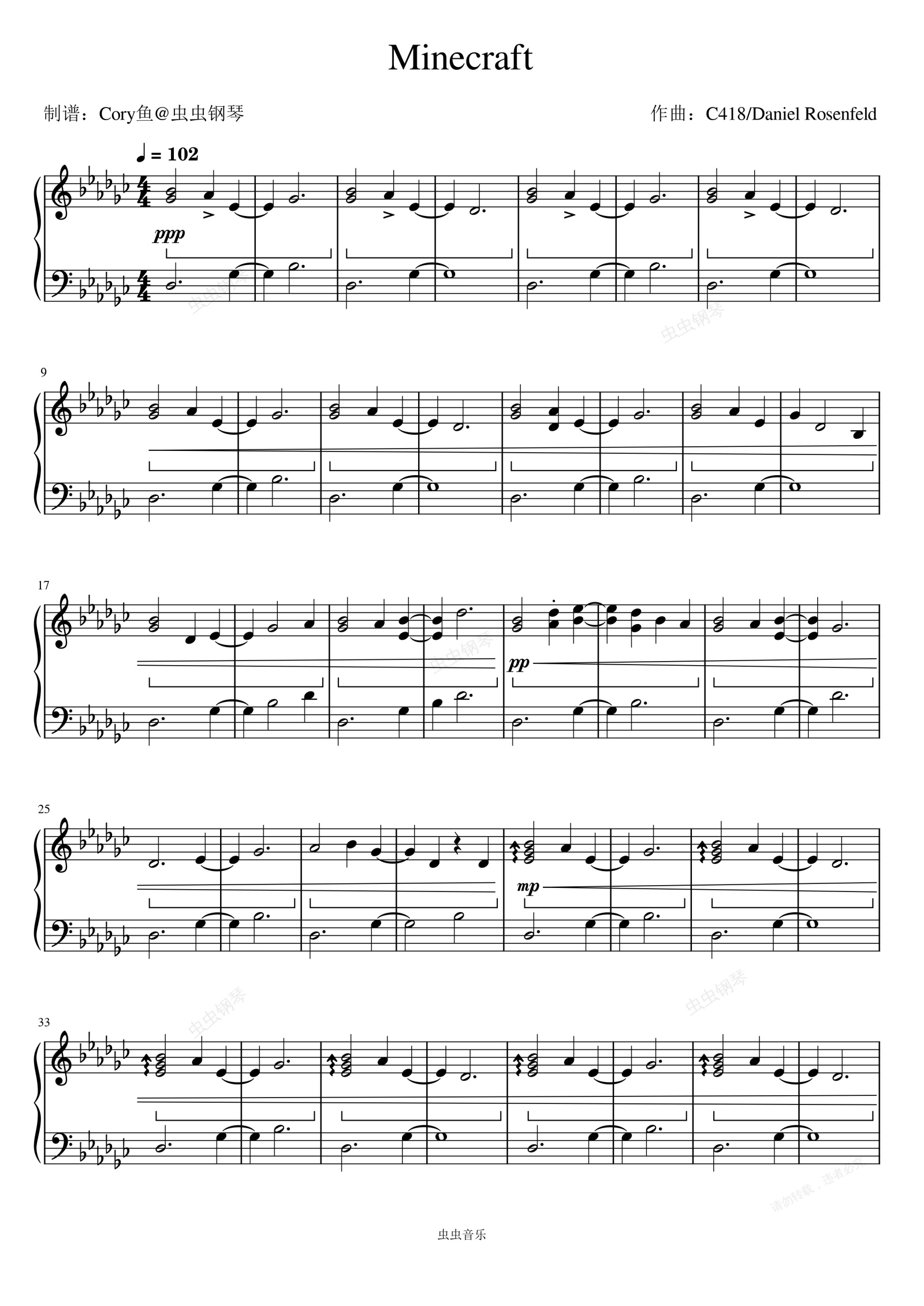 钢琴谱:《Minecraft》钢琴(竖琴)