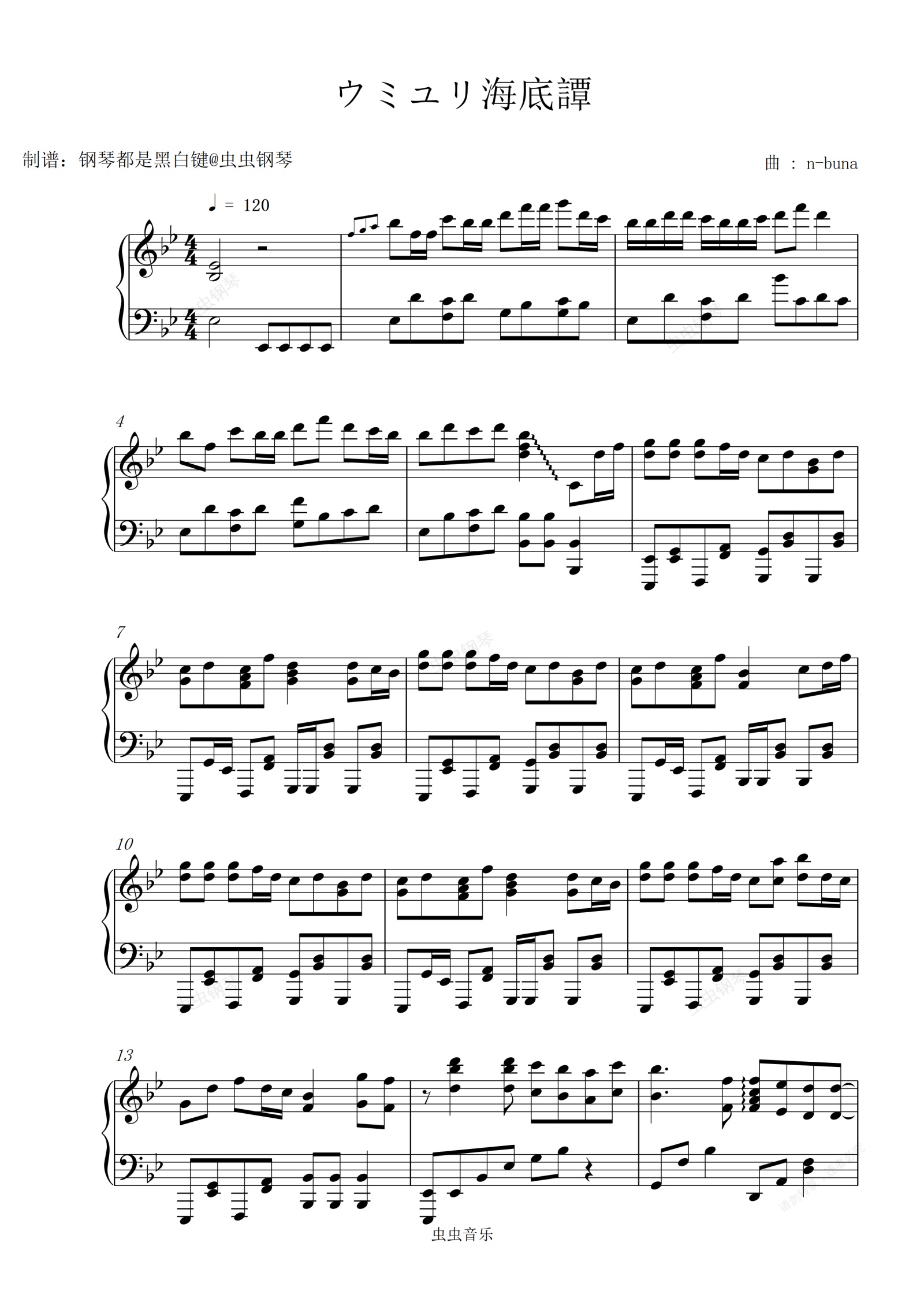 钢琴谱:【初音ミク】海百合海底谭/ウミユリ海底譚
