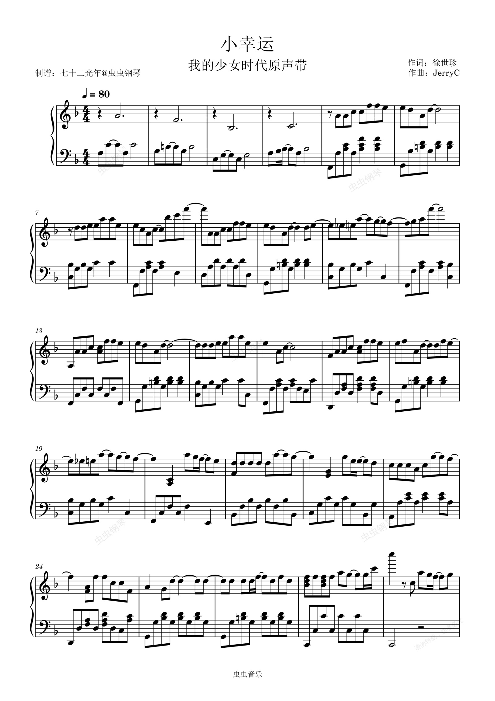 钢琴谱:小幸运(极限还原高难度版)