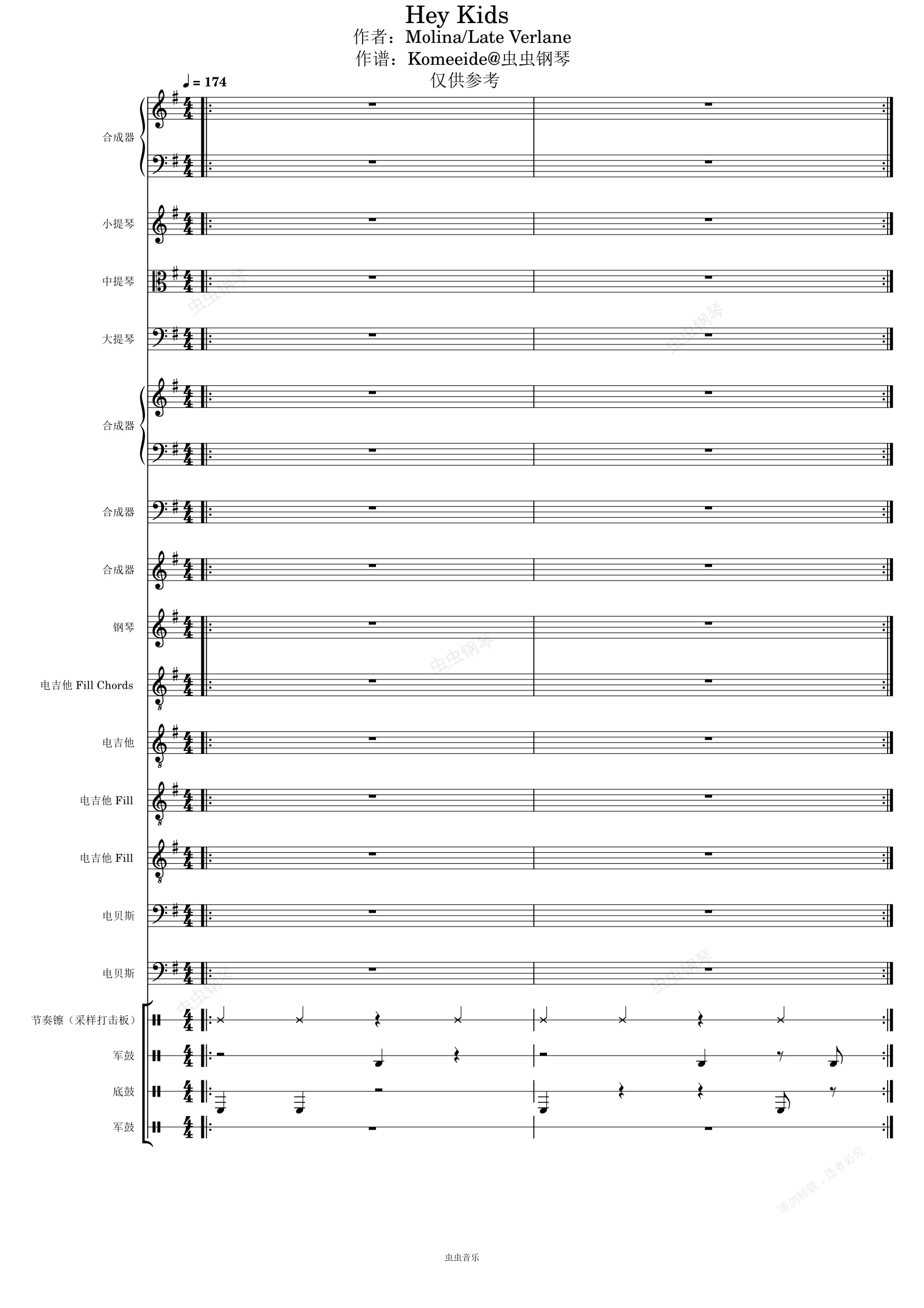 Hey Kids - Molina / Late Verlane 作谱:Komeeide 总谱 五线谱 G/e调