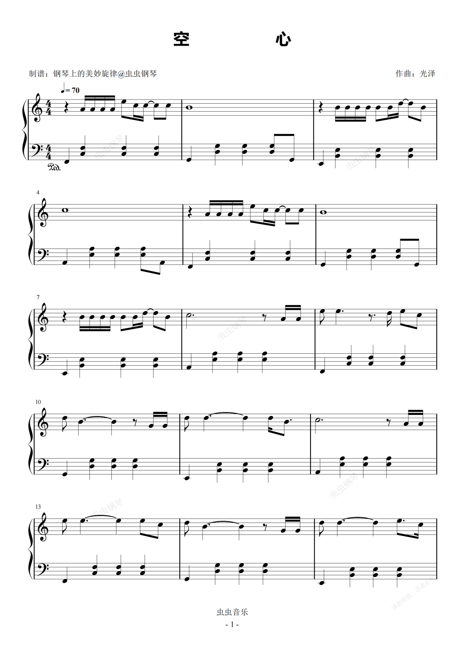 钢琴谱:空心 C调简易版 光泽