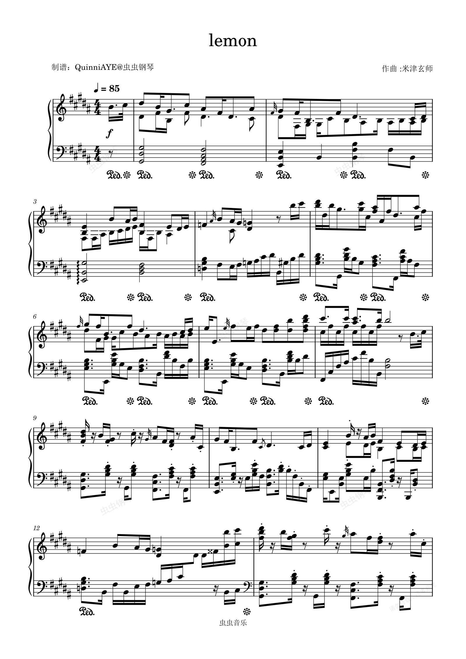 钢琴谱:Lemon-米津玄师-钢琴编配