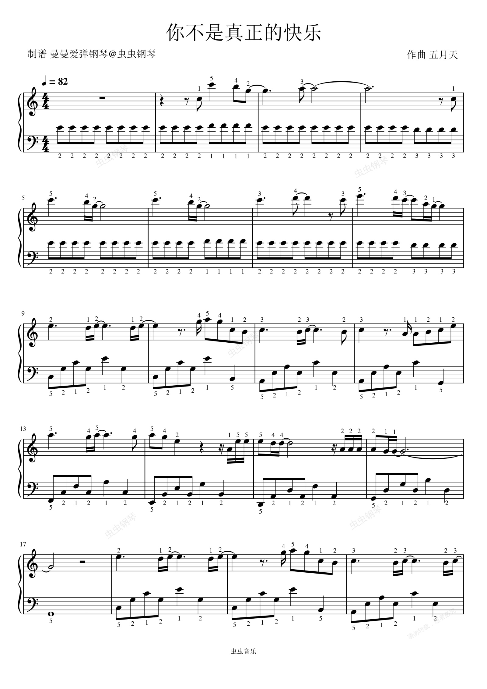 钢琴谱:《你不是真正的快乐》C调 简易 好听 好弹