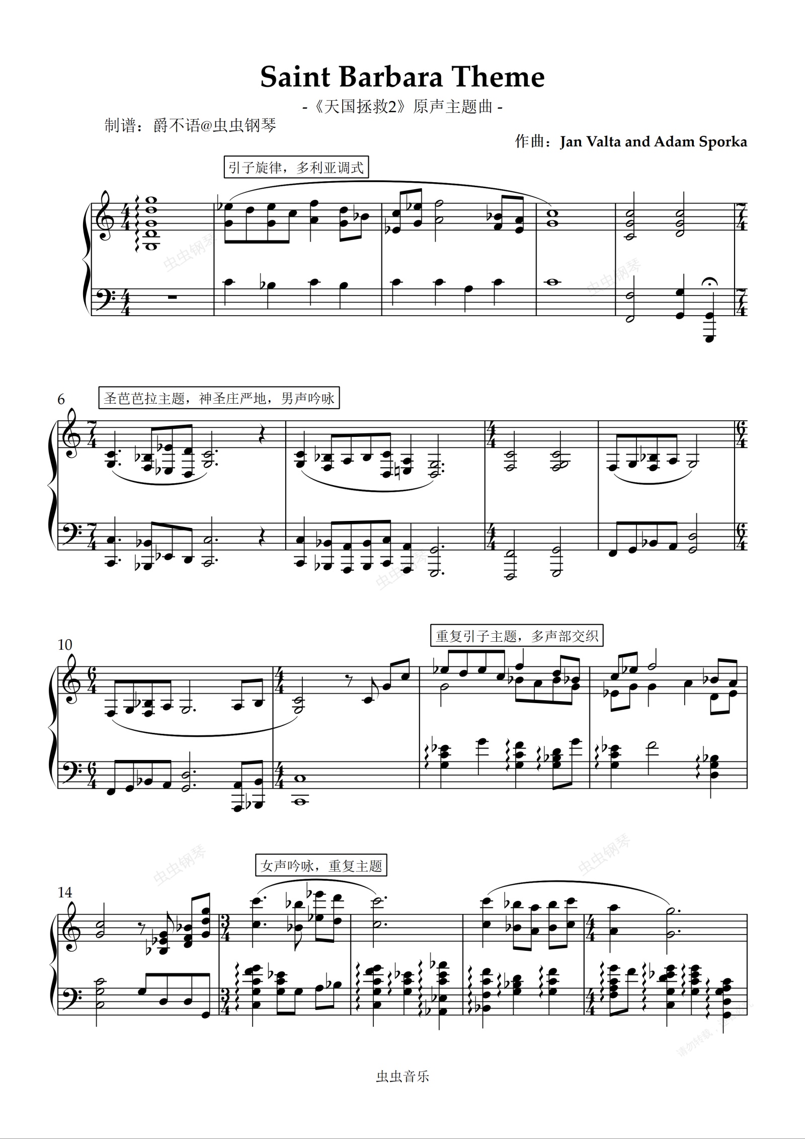 钢琴谱:【天国拯救2】“Saint Barbara Theme” - Jan Valta