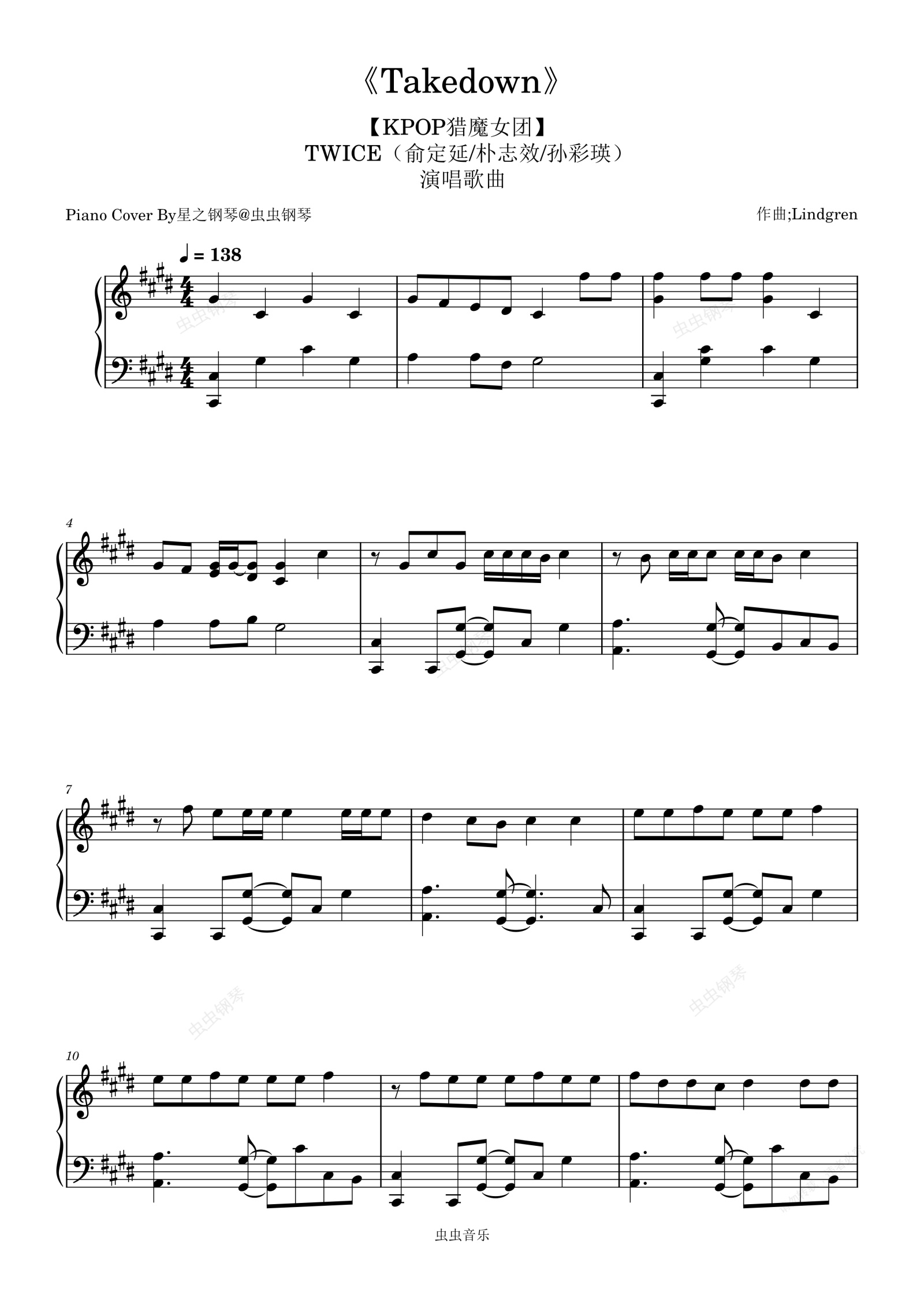 钢琴谱:【KPOP猎魔女团】《Takedown》钢琴独奏版~星之钢琴~