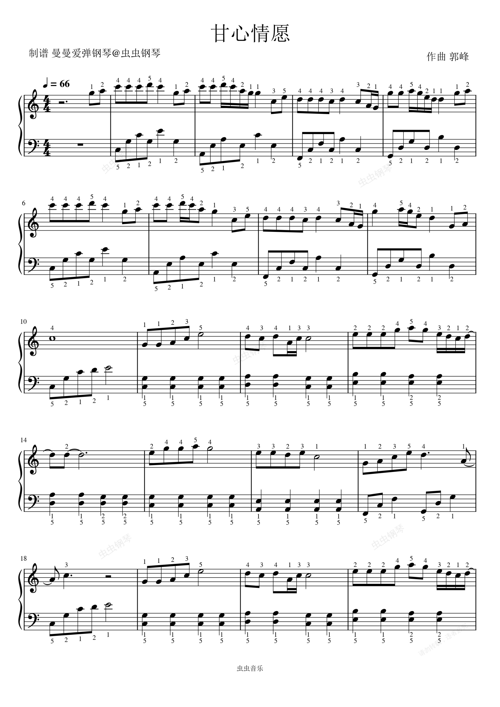 钢琴谱:《甘心情愿》C调 简易 好听 好弹