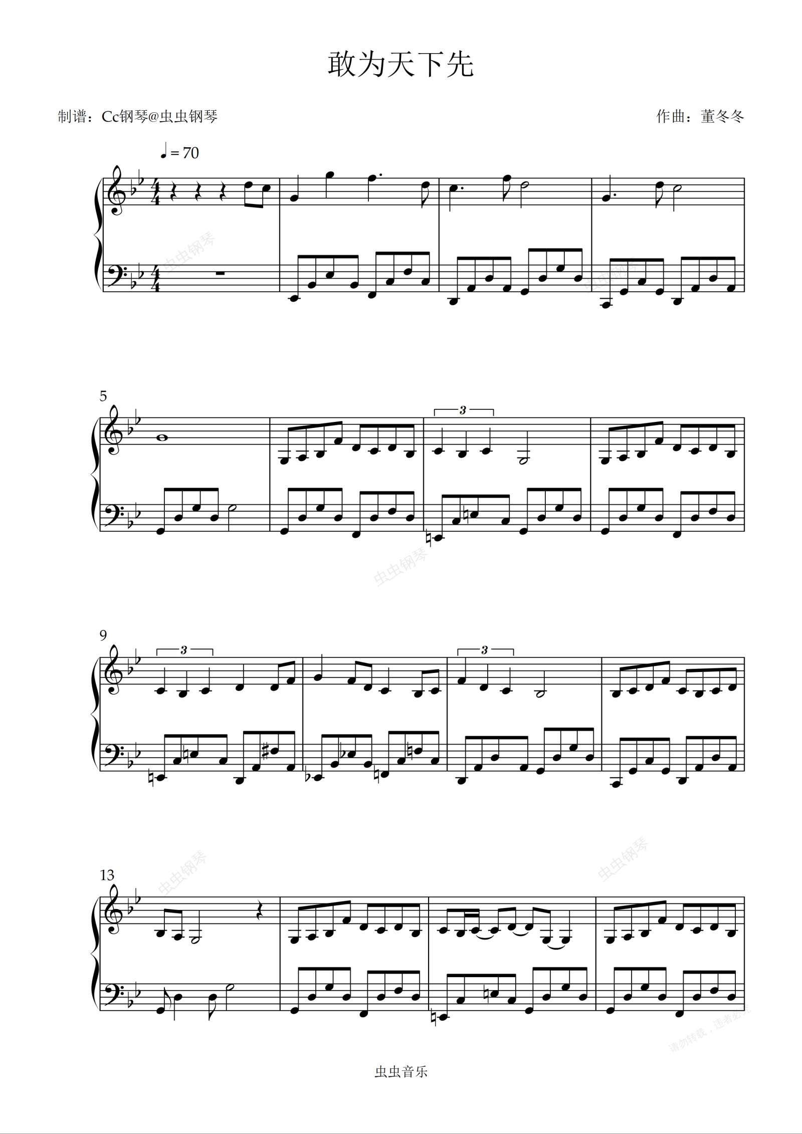 钢琴谱:敢为天下先 原调 好听易上手