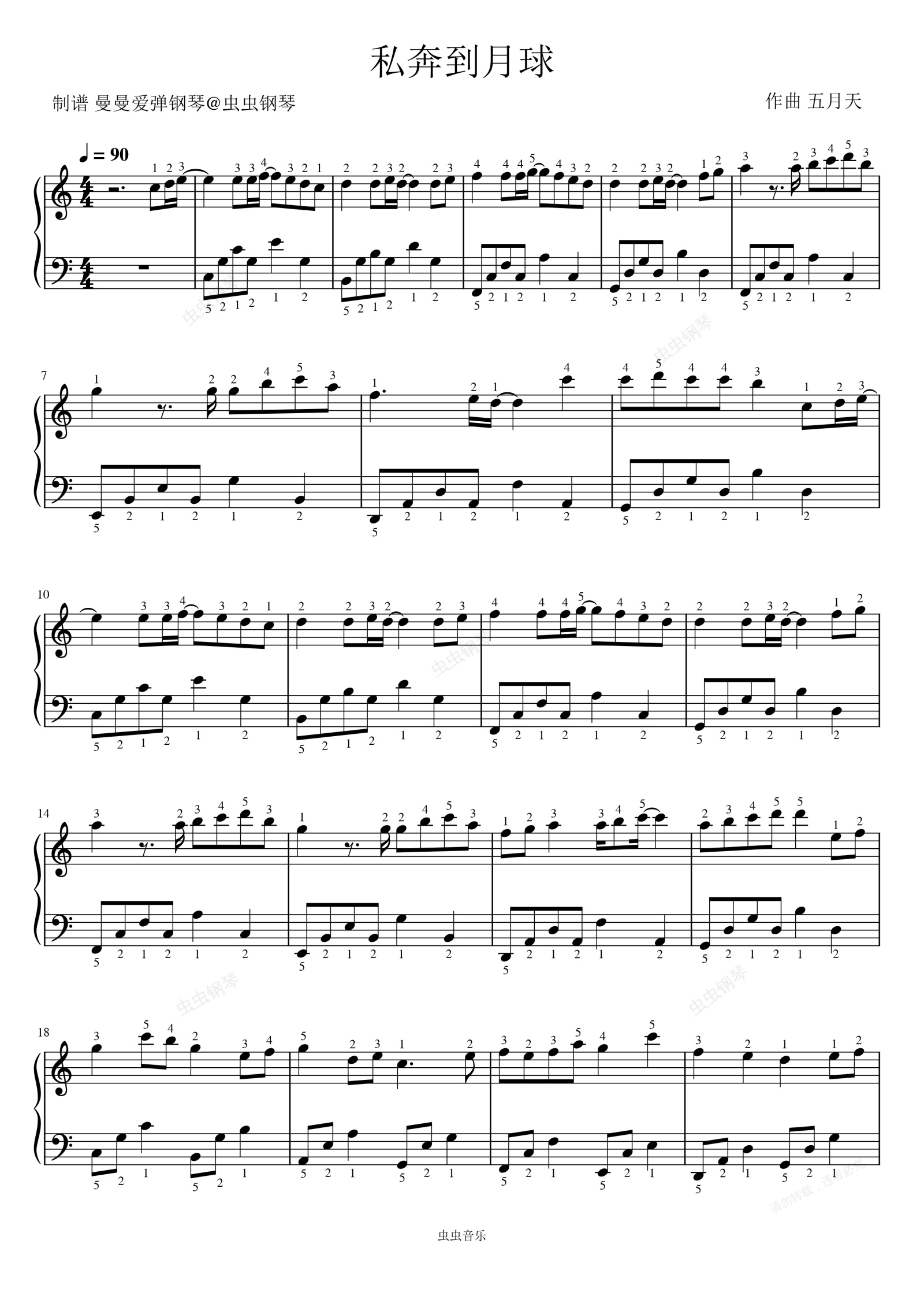 钢琴谱:《私奔到月球》C调 简易 好听 好弹