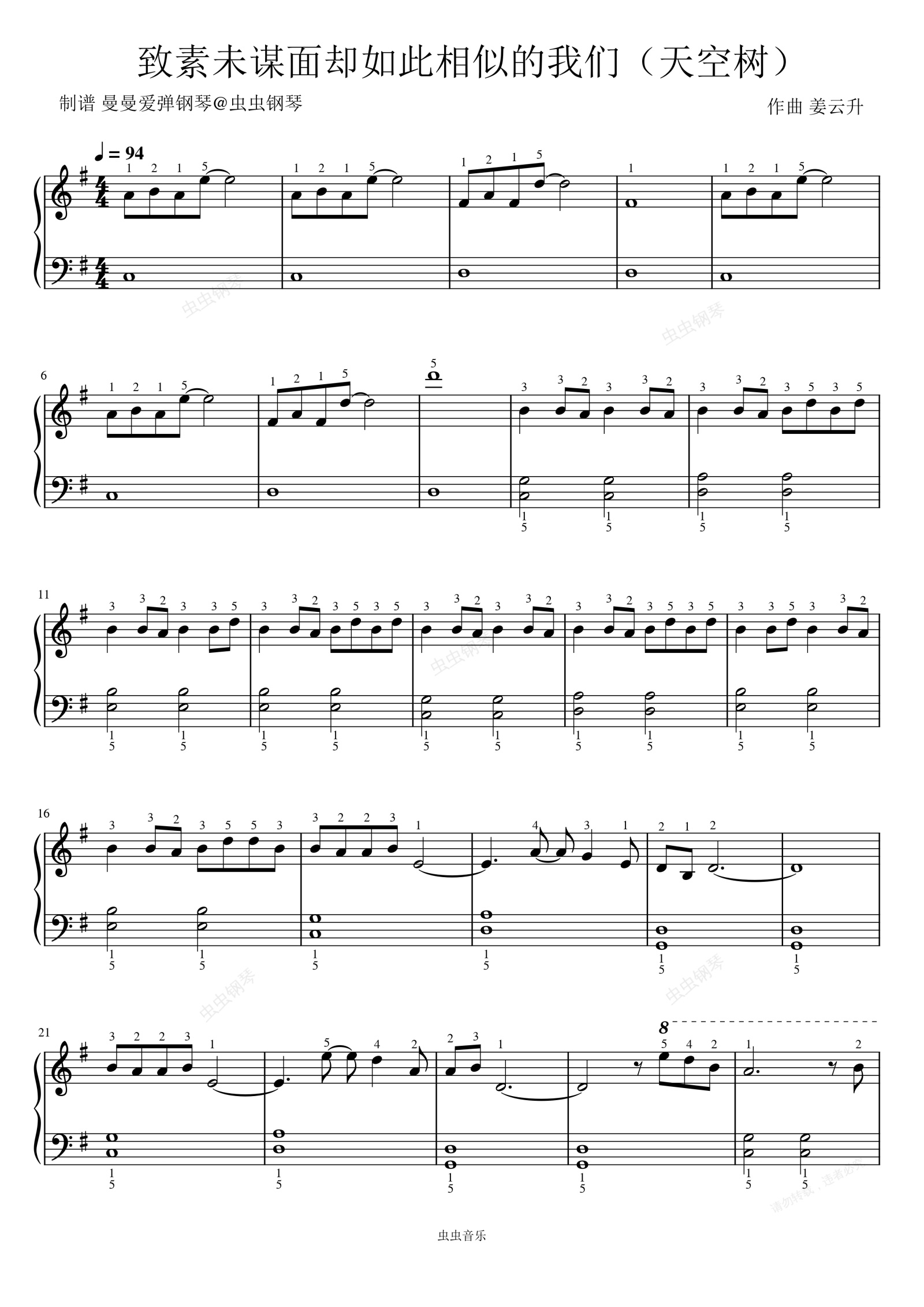 钢琴谱:《致素未谋面却如此相似的我们》原调 简易 好听 好弹
