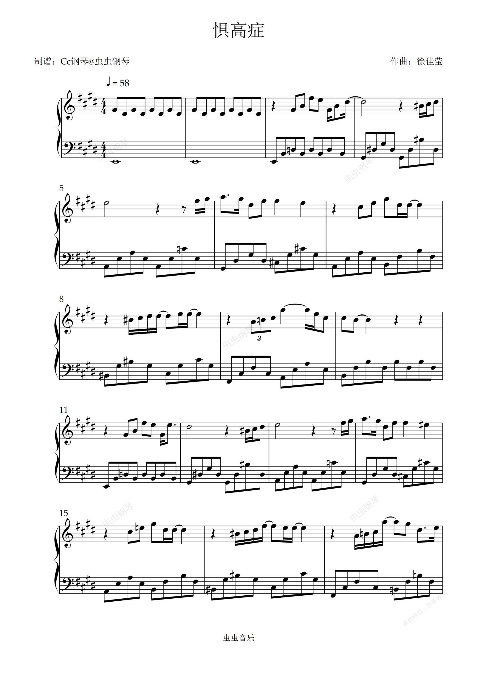 您的位置: 首页 > 钢琴谱库 > 惧高症钢琴谱-徐佳莹