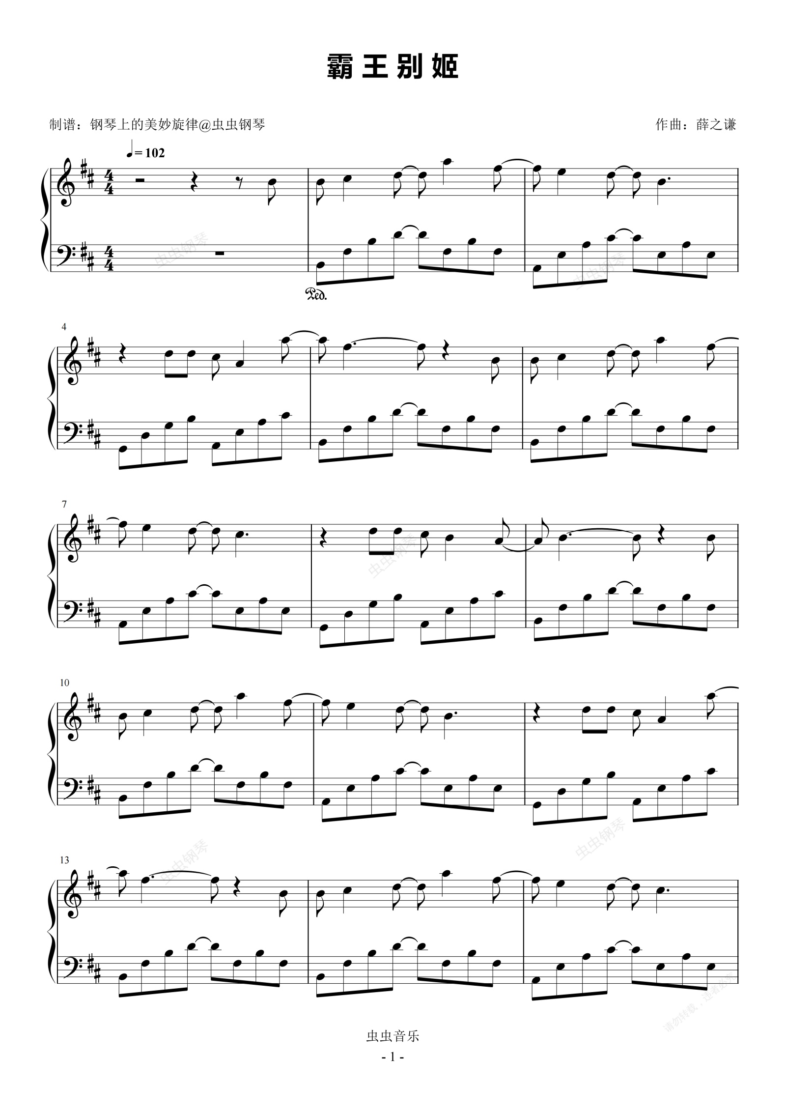 钢琴谱:霸王别姬 原调简易版 薛之谦/张靓颖