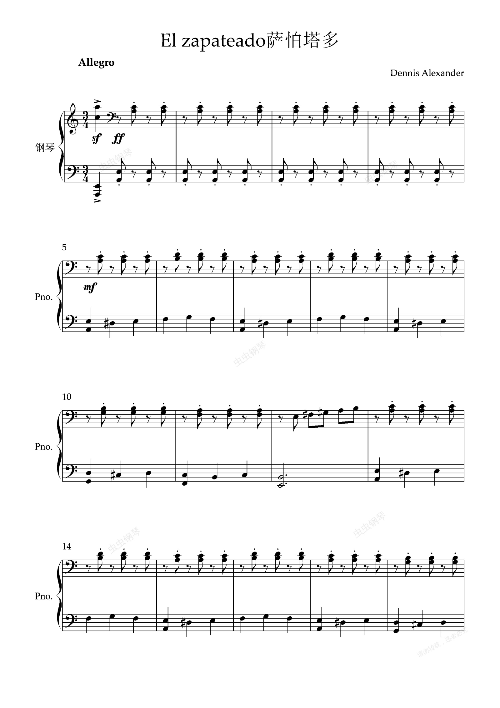 钢琴谱:El zapateado萨怕塔多(西班牙舞曲 踢踏舞)