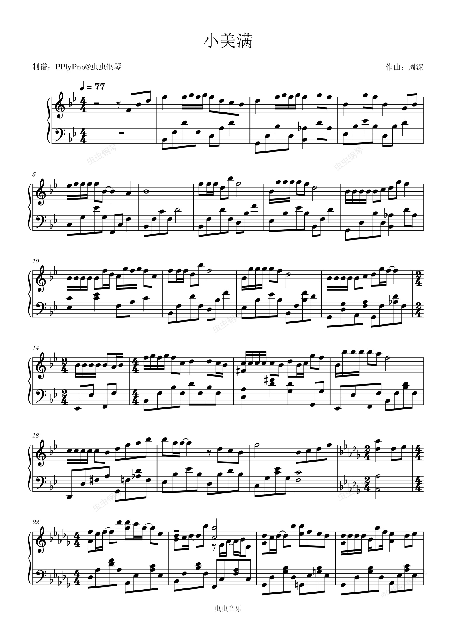 您的位置: 首页 > 钢琴谱库 > 小美满钢琴谱-周深