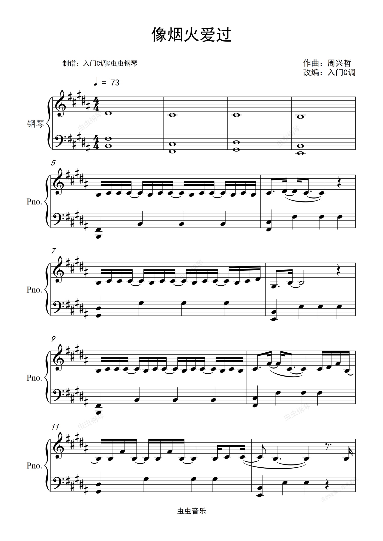 钢琴谱:像烟火爱过 - 单依纯 (《许我耀眼》电视剧主题曲)【原调简单入门版】