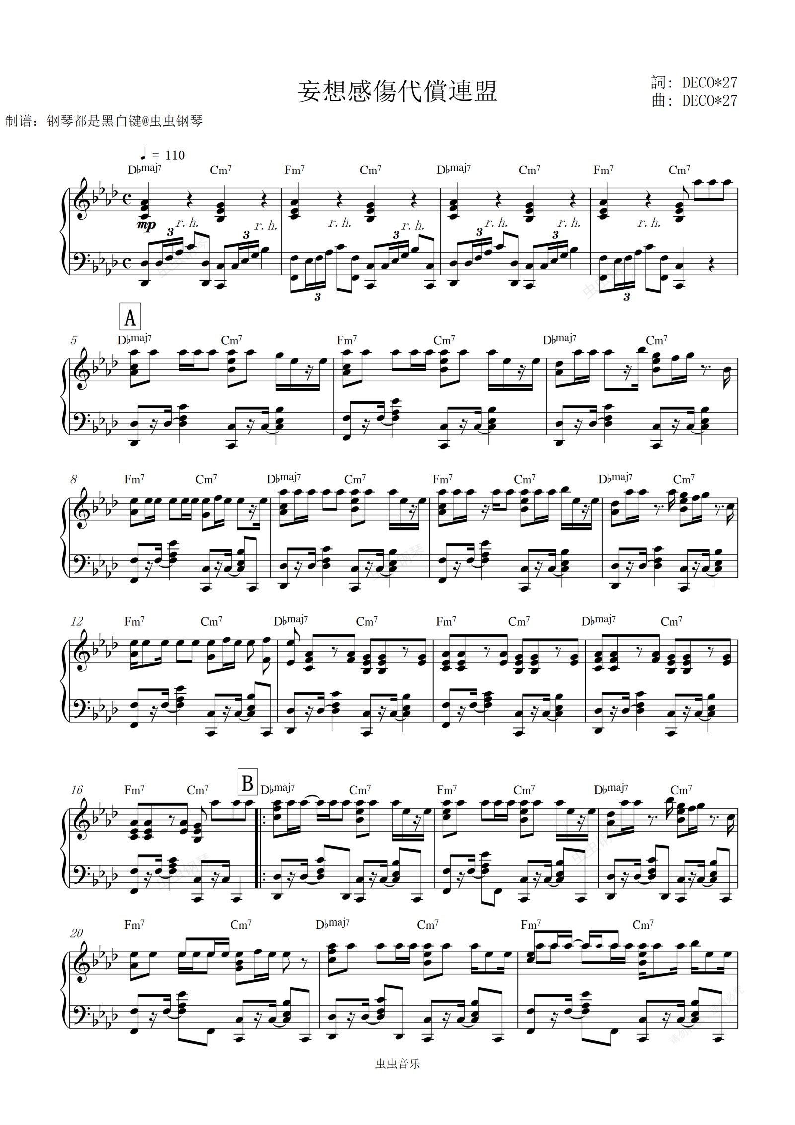 钢琴谱:(初音ミク)妄想感傷代償連盟【演奏版附和弦标记】