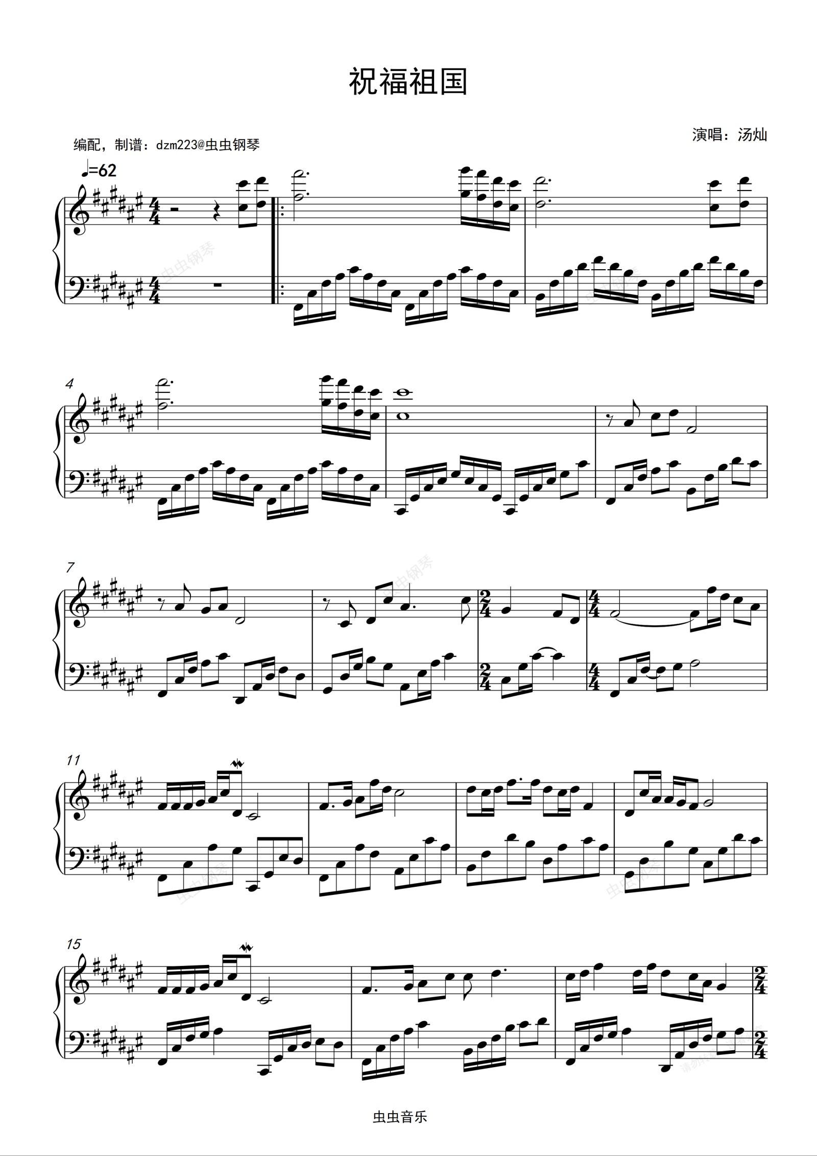 您的位置: 首页 > 钢琴谱库 > 祝福祖国钢琴谱-汤灿