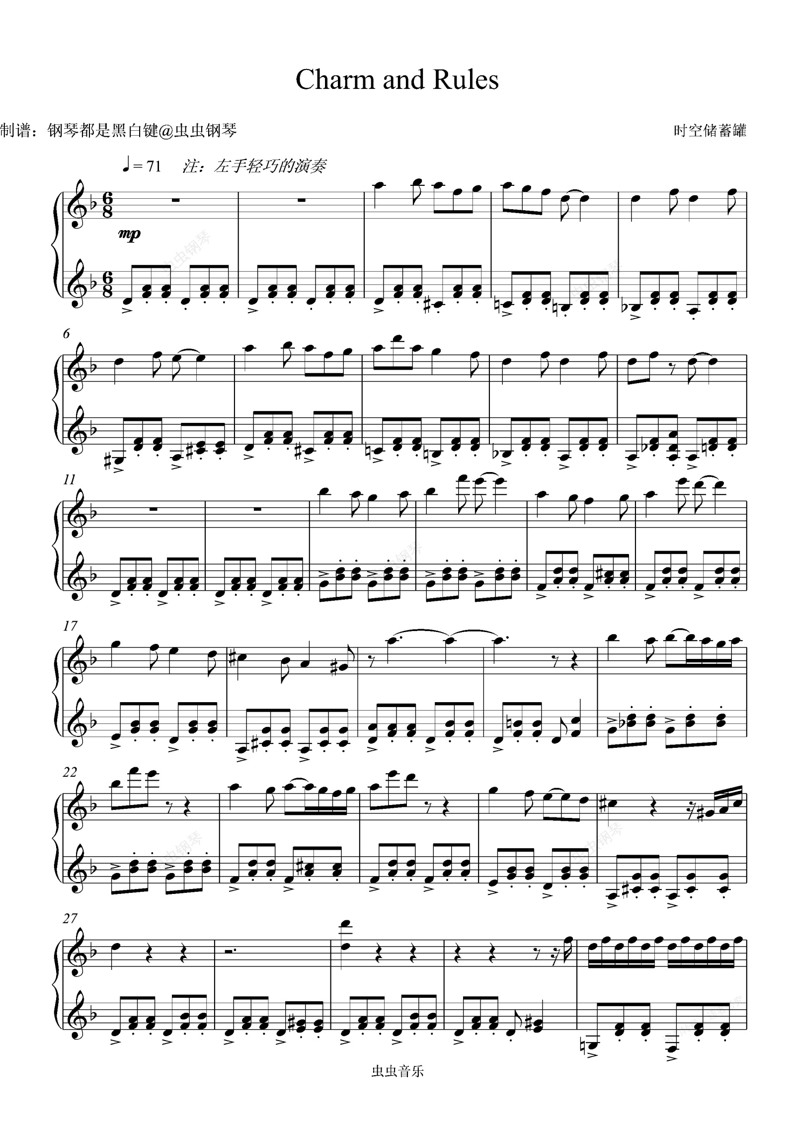 钢琴谱:好听到爆《Charm and Rules》-时空储蓄罐
