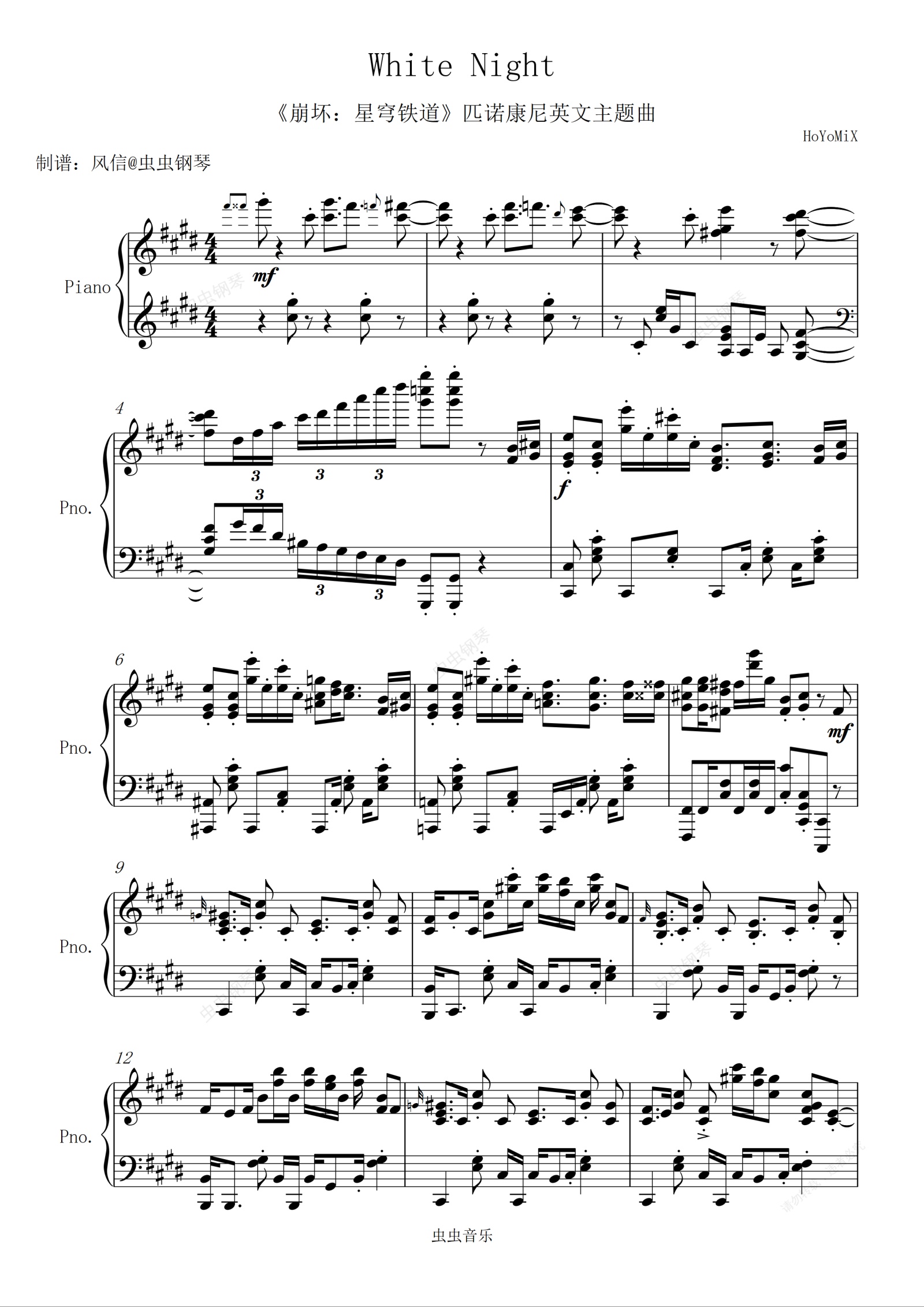 钢琴谱:《崩坏:星穹铁道》匹诺康尼英文主题曲-WHITE NIGHT (不眠之夜)
